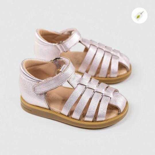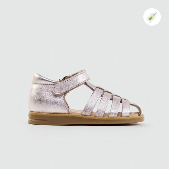 Découvrez la sandale Cala de Acebos, un modèle élégant et confortable pour les filles. Avec ses lanières en cuir métallisé et sa semelle intérieure rembourrée ornée de motifs de coquillage, cette sandale est parfaite pour l’été. Le talon fermé offre une protection supplémentaire, tandis que la fermeture velcro assure un ajustement parfait. Disponible dans plusieurs tailles.