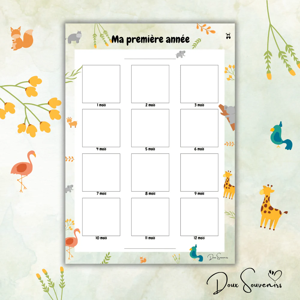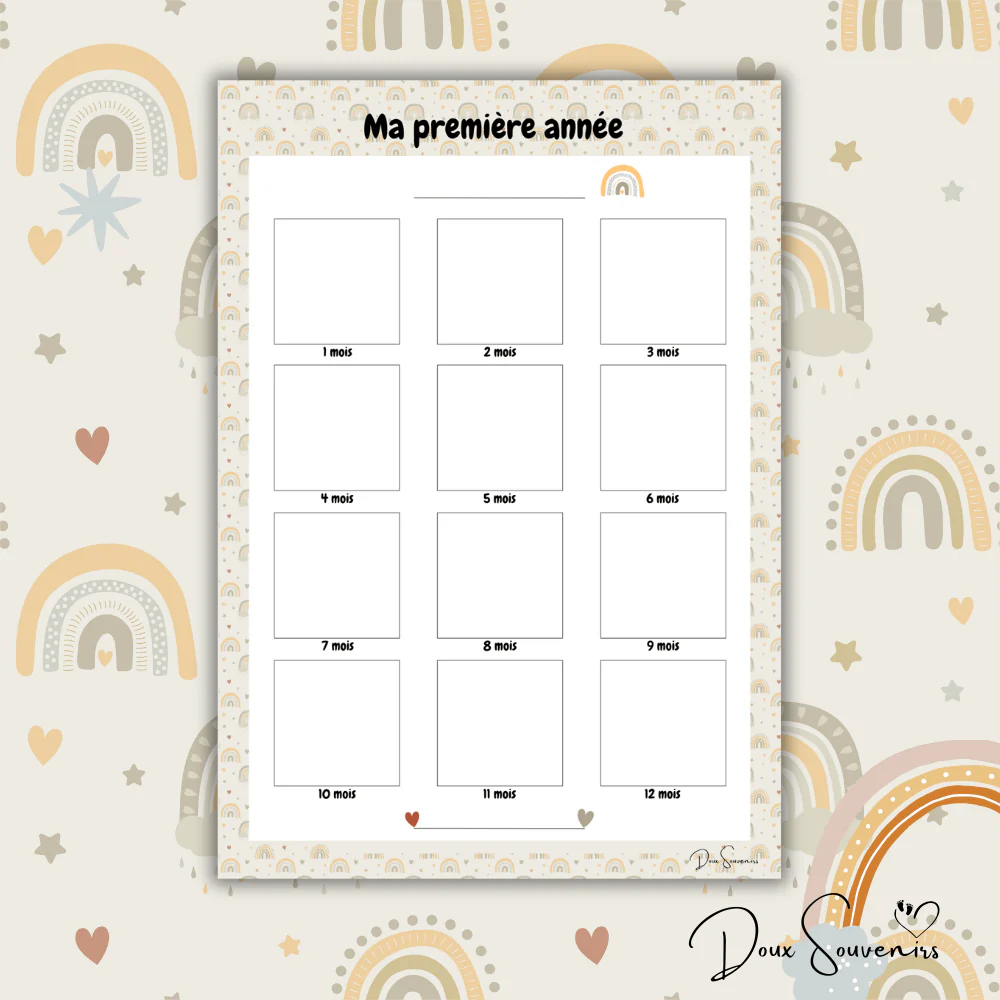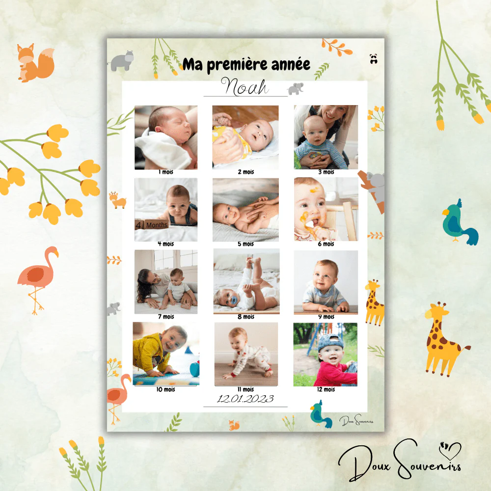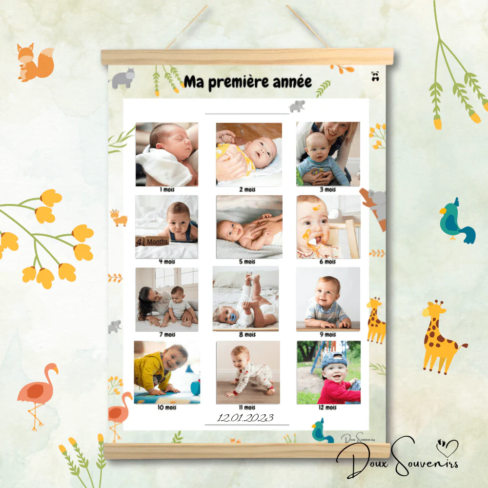 L’affiche « Ma Première Année » vous permet de coller une photo par mois pour créer un souvenir unique et émouvant.