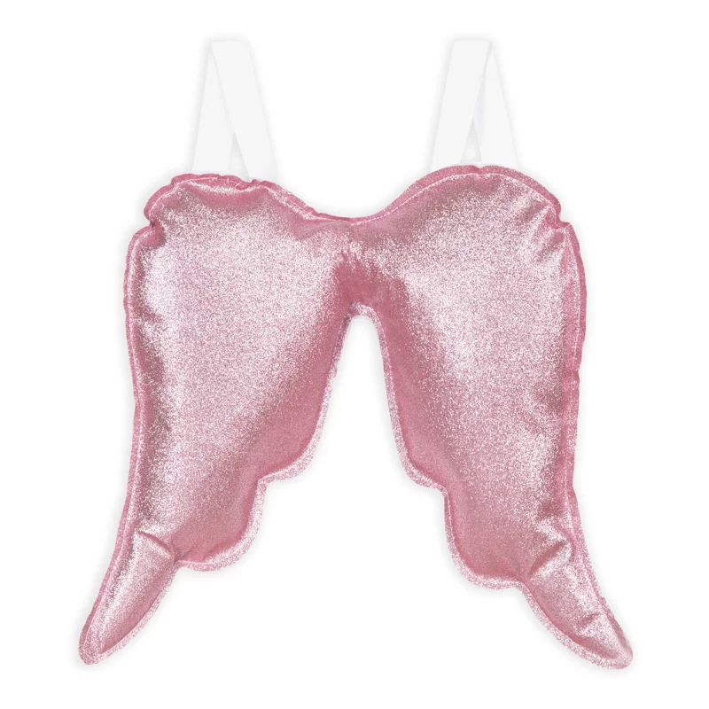 Les ailes d’ange, avec une face feutrine et l’autre en tissus pailleté. Bretelles élastiques. Disponible dans 4 couleurs: argent, doré, rose, blanc. Taille unique 3- 8 ans
