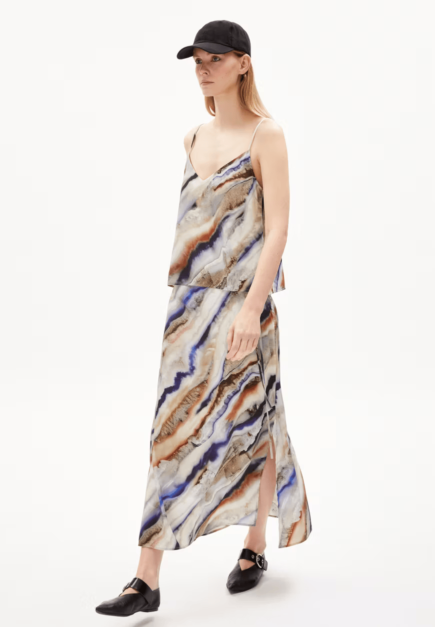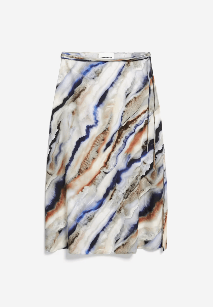 La GRAATIA PÄRLAA est une jupe à coupe standard, idéale pour sublimer votre silhouette tout en restant confortable. Composée d’un mix de 73 % Lyocell (TENCEL™) et 27 % viscose (LENZING™ ECOVERO™), elle allie douceur, fluidité et respect de l’environnement. Son motif imprimé et sa teinte élégante « cinnamon dust » en font une pièce intemporelle et polyvalente, parfaite pour toutes les occasions.