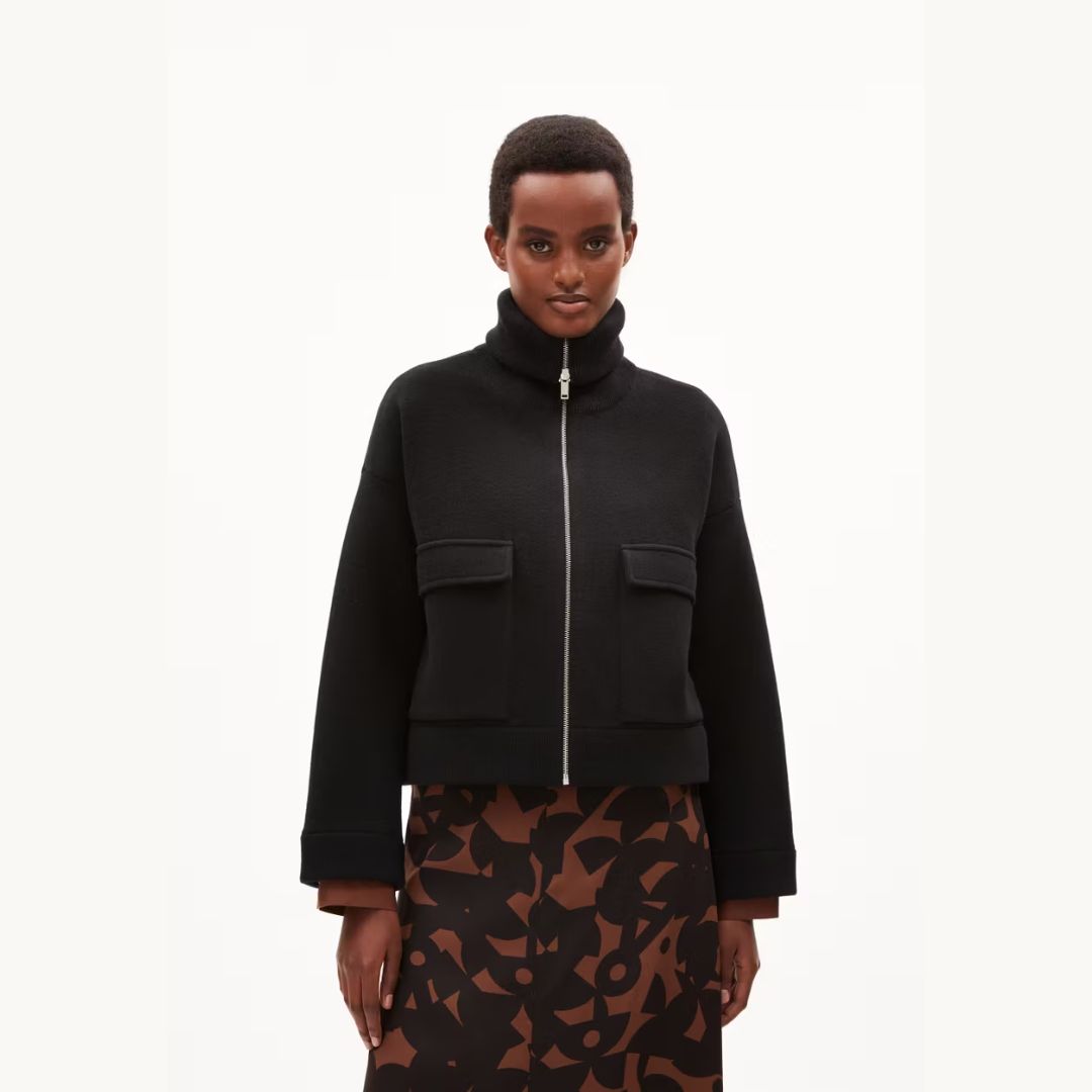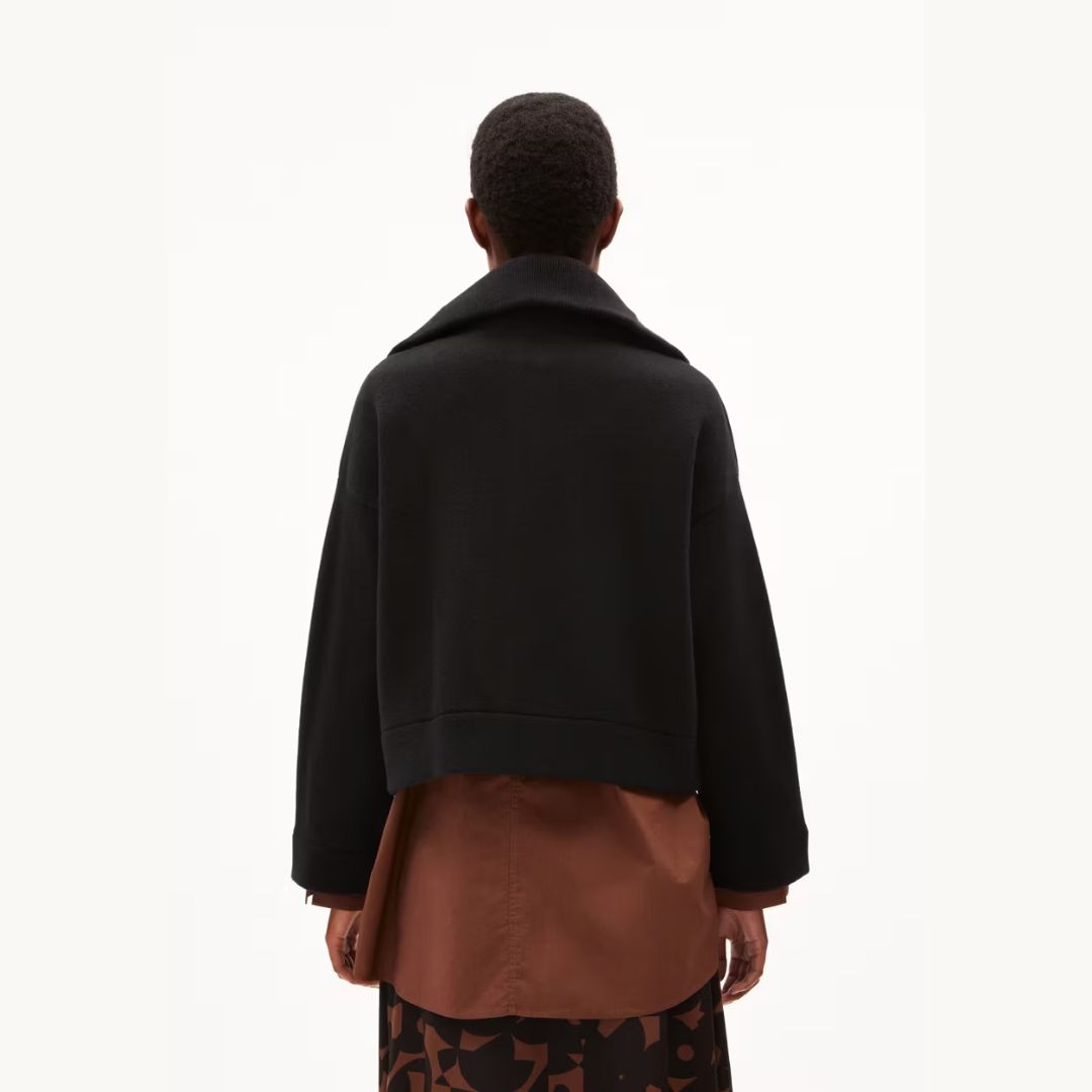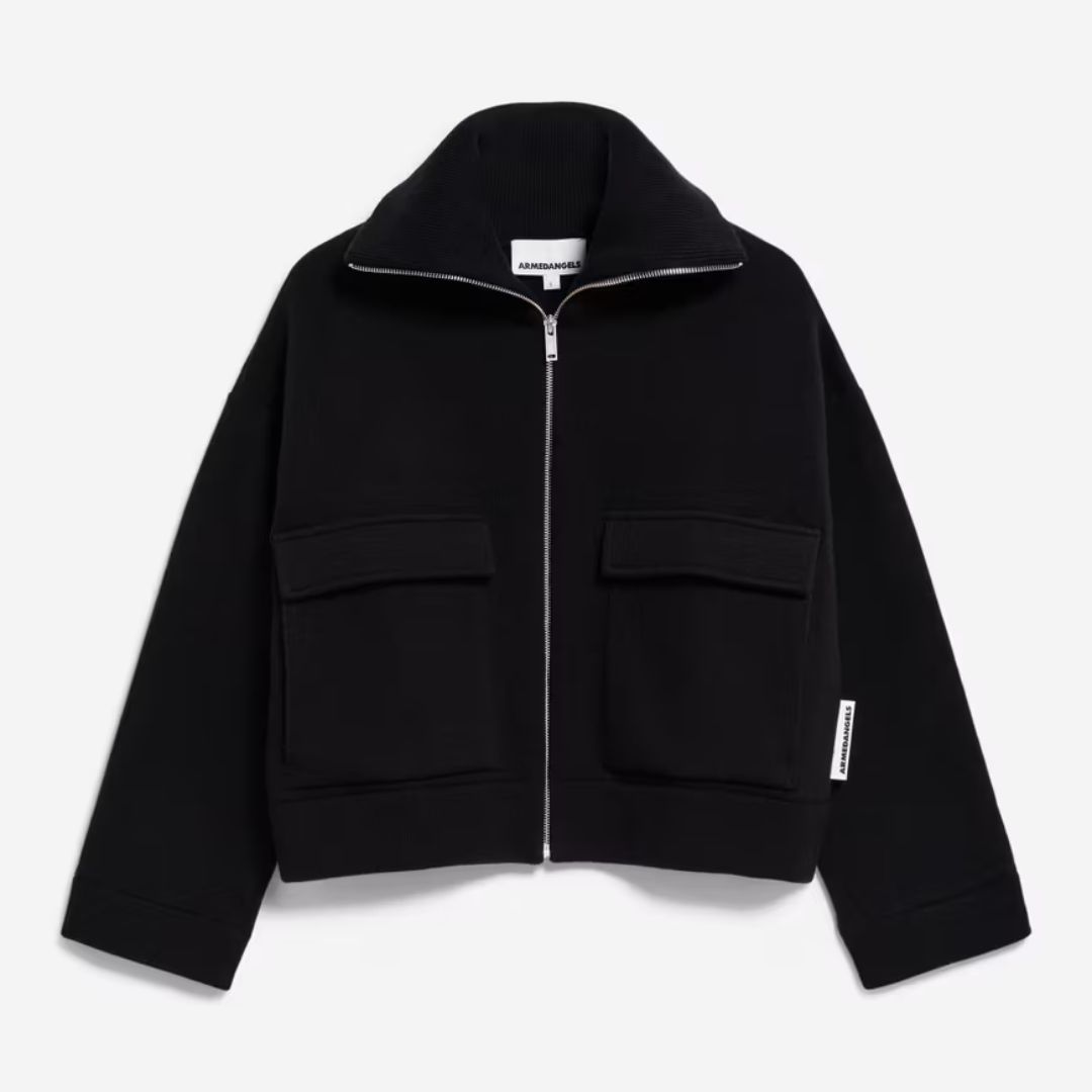 La veste cardigan JOANIAAS est une pièce maîtresse de notre collection automne, parfaite pour allier style moderne et confort. Confectionné en coton bio mélangé, ce cardigan oversize et cropped offre une coupe décontractée et un design épuré. Le col montant avec fermeture éclair et les grandes poches plaquées ajoutent une touche pratique et chic. Ce cardigan est fabriqué à partir d’un mélange unique de coton bio, de laine bio, et de polyamide recyclé, garantissant un confort durable et respectueux de l’environnement.