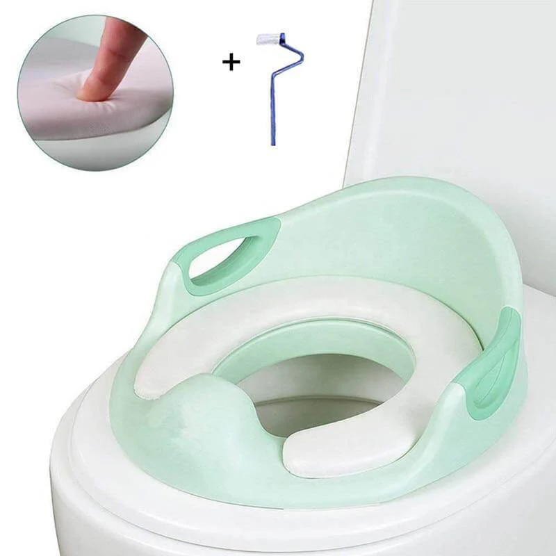 Our Baby Toilet Seat protection system, plus the comfortable padded cushion and backrest make up a cozy potty for your little ones.