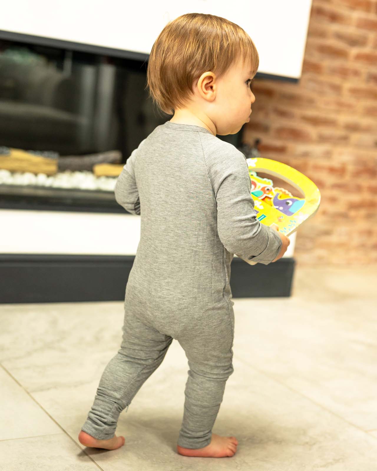 BABYGO® Dors-bien côtelé gris avec fermeture éclair