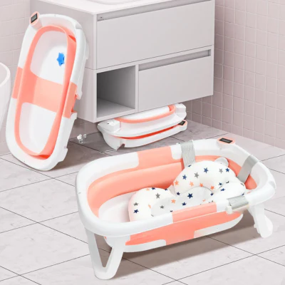 Notre baignoire bébé pliable résout le casse-tête des baignoires imposantes.