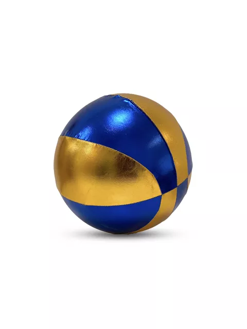 Le ballon en tissus, modèle « basket », bleu et or en diamètre 22 cm est livré dégonflé.