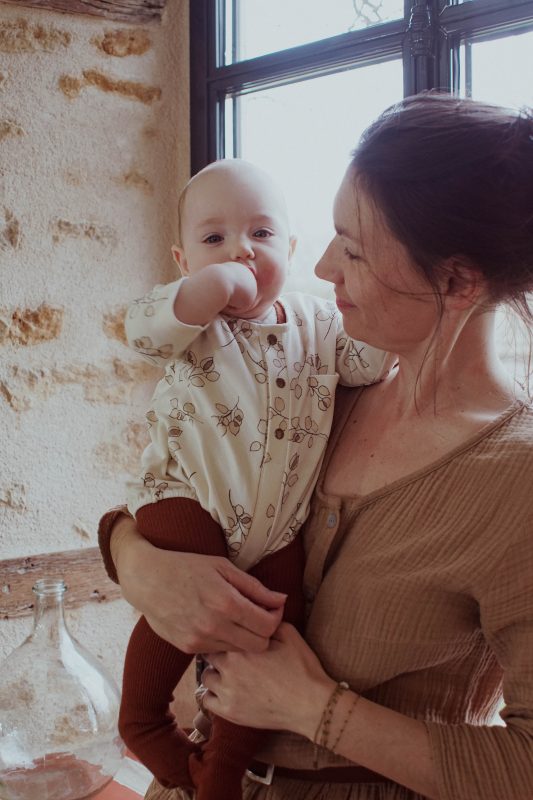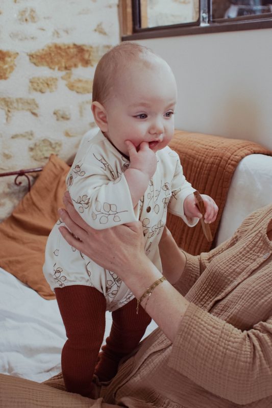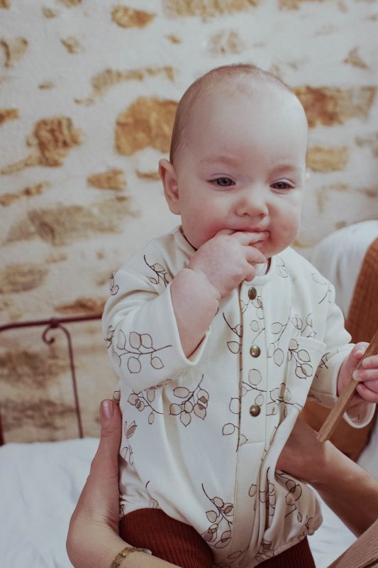 Une barboteuse pour bébé à manches longues, pour l’habiller simplement et rapidement, tout en étant hyper stylé! C’est la pièce la plus mignonne du vestiaire bébé. Avec ses élastiques aux cuisses qui ne serrent pas, on profite des cuissots potelés 😋 et bébé n’est pas contraint pour crapahuter. Elle s’ouvre devant et à l’entrejambe pour faciliter le change. A coupler avec un gilet à capuche à oreilles AMAROK pour un total look trop chou 🙂 Le petit + : le vêtement facile à enfiler et tout-en-un pour habiller bébé entièrement ou