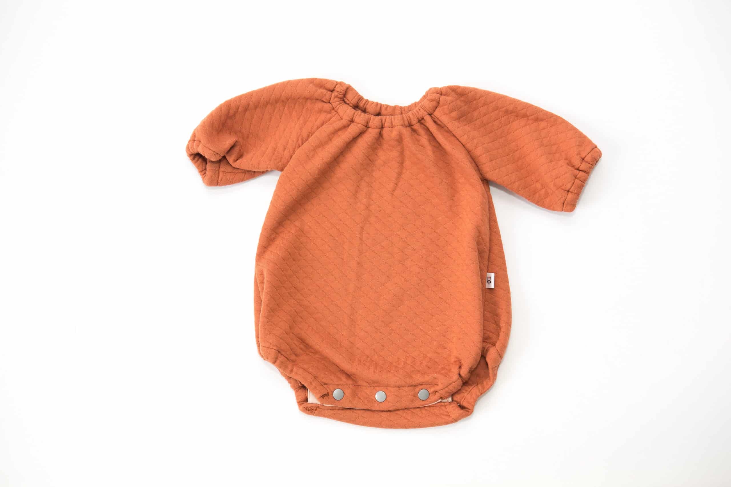 Le cadeau naissance plein d’amour, une jolie barboteuse matelassée rouille produite en France