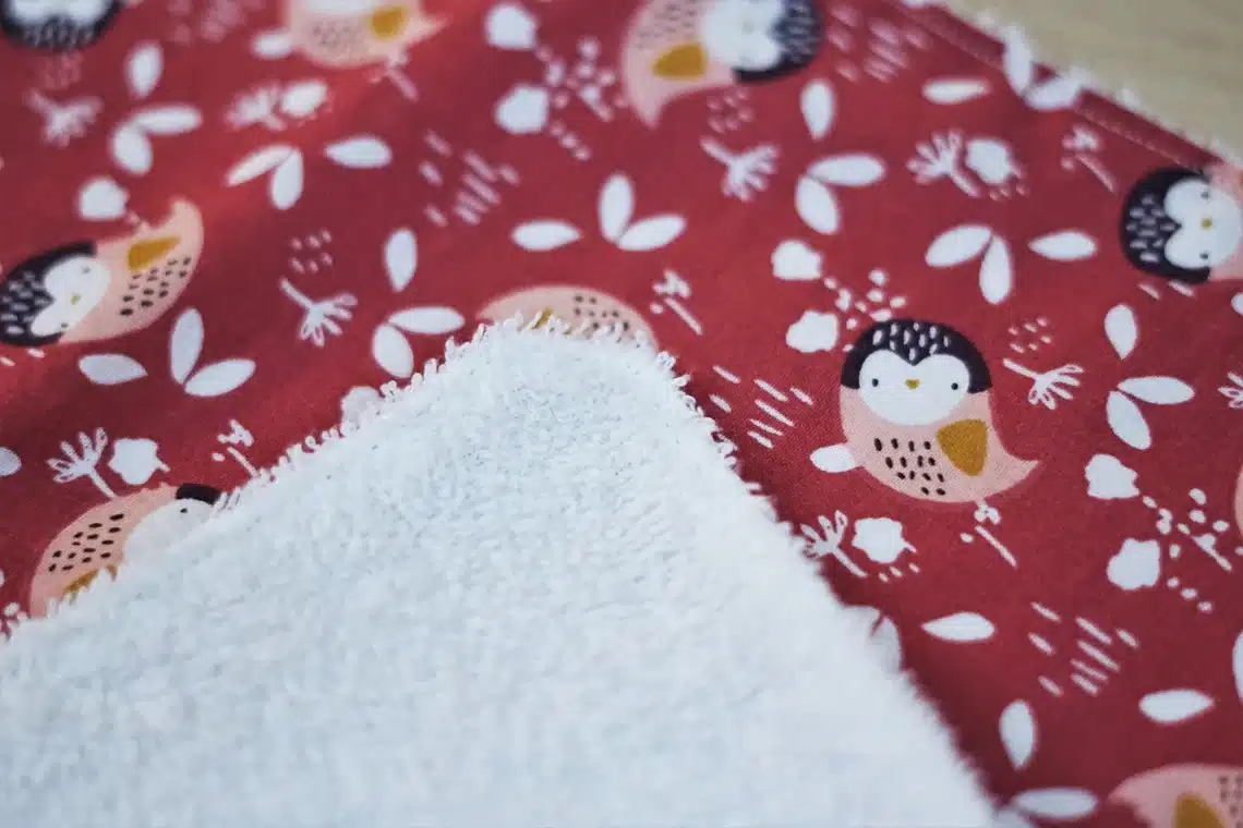 Emylie à Gières, a sélectionné des tissus Okeo-tex-100 avant de coudre avec amour ces bavoirs :