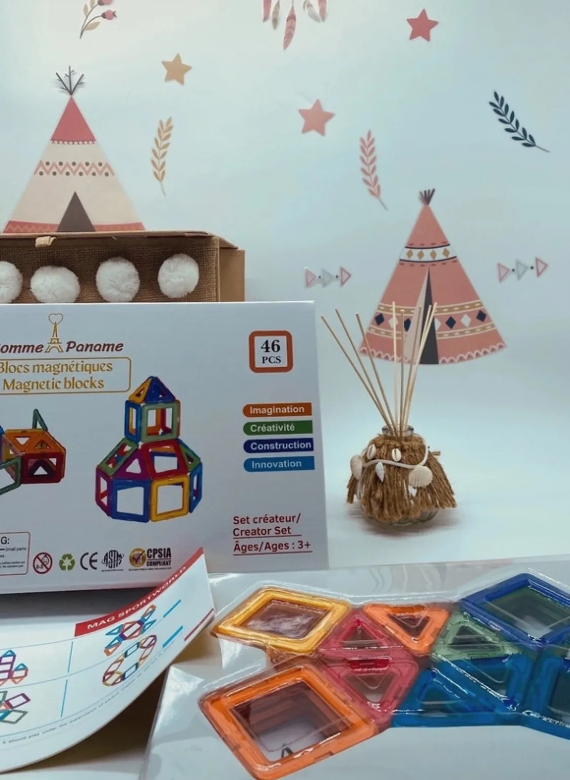 Éveillez l’imagination et la motricité fine de votre enfant avec nos blocs de construction magnétiques sûrs et faciles à manipuler dès 3 ans !