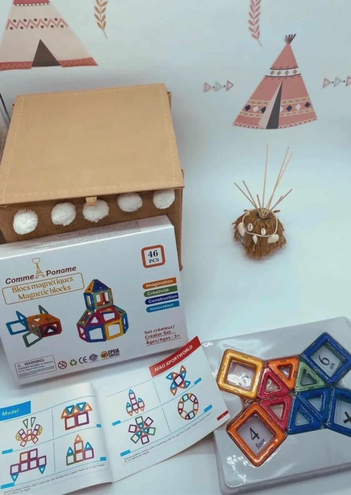 Les carreaux magnétiques inspirent la capacité de manipulation, l’imagination et la créativité des enfants, la résolution de problèmes, les compétences sociales, la motricité.