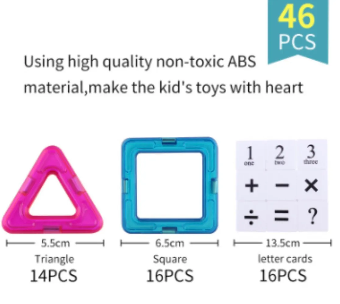 Les jouets construits sont plus solides, plus extensibles, plus réalistes et plus modernes! Toutes les pièces sont compatibles à 100 % avec tous les autres ensembles. Ces jeux de construction magnétiques promettent aux enfants un plaisir de jeu maximal et offrent la possibilité d’explorer le monde fascinant du magnétisme à l’aide de pièces surdimensionnées spécifiquement destinées à la manipulation par les jeunes enfants. Enchantez vos enfants par la découverte des effets d’attraction et de répulsion des aimants. Bien aimantées, les pièces de ce jeu de blocs de construction magnétiques poisson tiennent solidement en place. Une fois assemblées, permettent de faire de nombreuses figures: chèvres, maison, pentagone, cœur, moulin, avion, balle,… Les enfants peuvent créer des formes planes en 2D ou des structures géométriques en 3D.