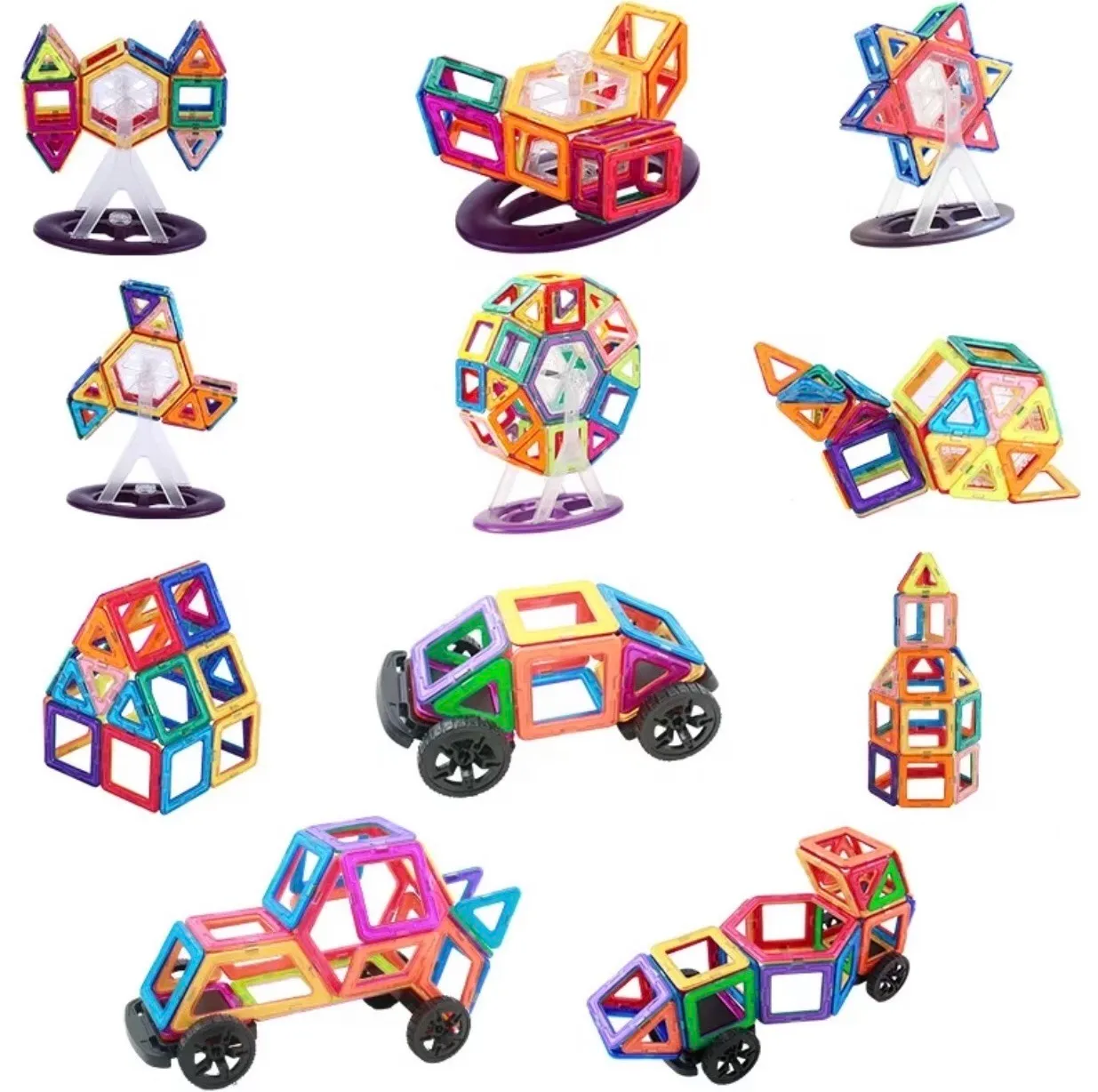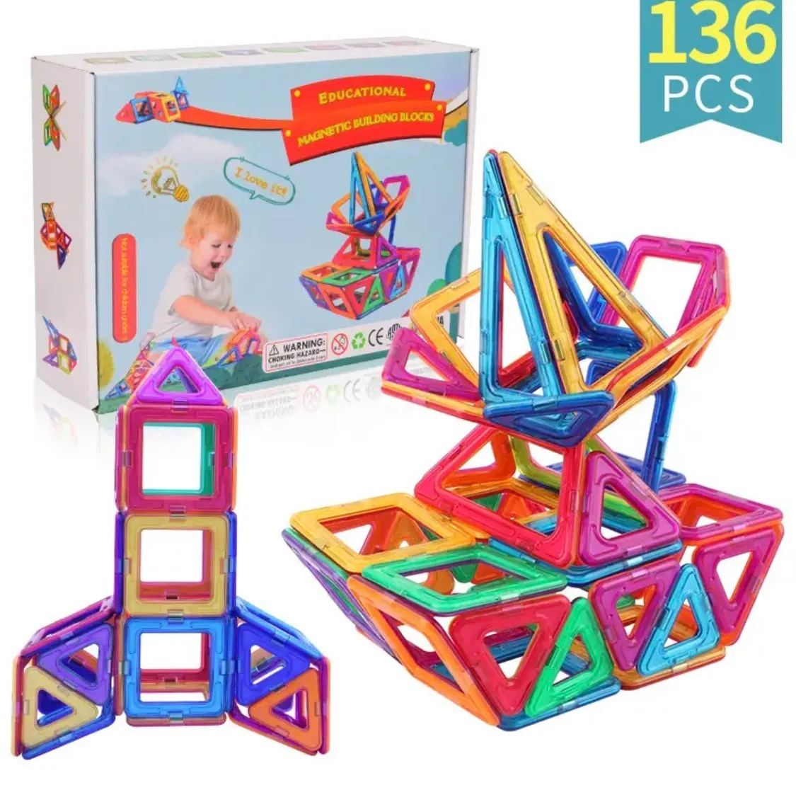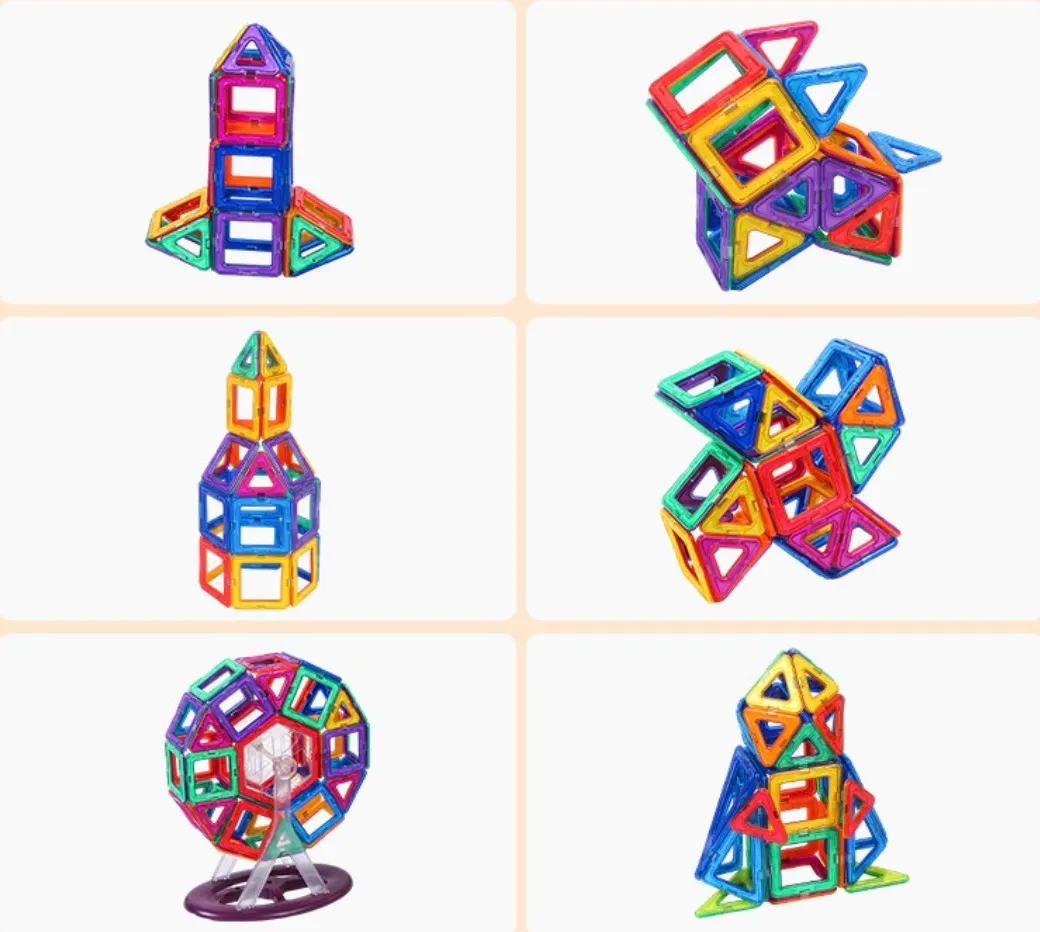 Blocs de Construction Magnétiques Bateau jouets 136PCS Jeux de Construction colorées – 3D Construction Magnétiques ludiques sont des jouets aimantés éducatifs créatifs. Les jouets construits sont plus solides, plus extensibles, plus réalistes et plus modernes! Toutes les pièces sont compatibles à 100 % avec tous les autres ensembles. Ces jeux de construction magnétiques promettent aux enfants un plaisir de jeu maximal et offrent la possibilité d’explorer le monde fascinant du magnétisme à l’aide de pièces surdimensionnées spécifiquement destinées à la manipulation par les jeunes enfants. Enchantez vos enfants par la découverte des effets d’attraction et de répulsion des aimants. Bien aimantées, les pièces de ce jeu de blocs de construction magnétiques bateau tiennent solidement en place. Une fois assemblées, permettent de faire de nombreuses figures: chèvres, maison, pentagone, cœur, moulin, avion, balle,… Les enfants peuvent créer des formes planes en 2D ou des structures géométriques en 3D.
