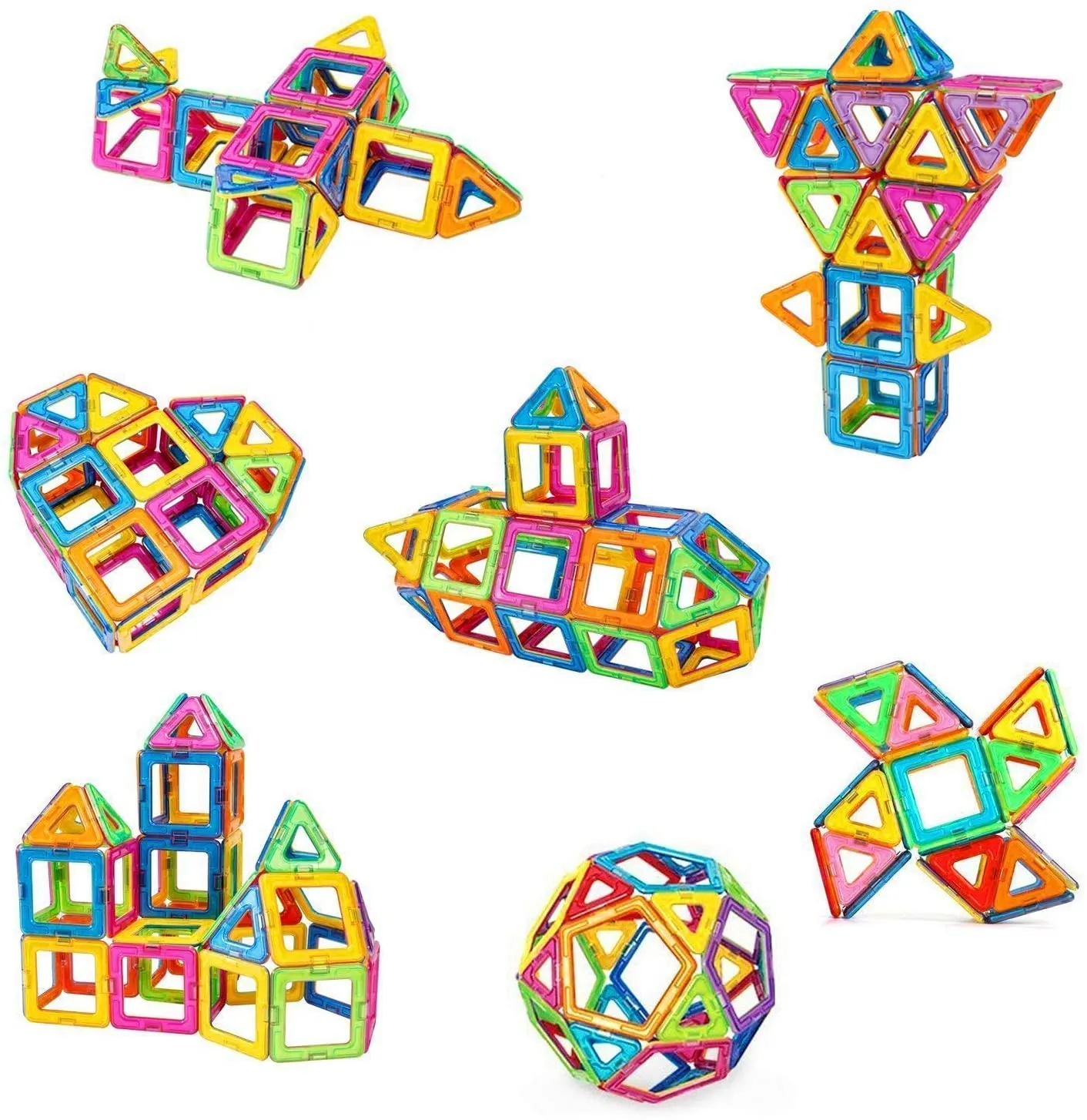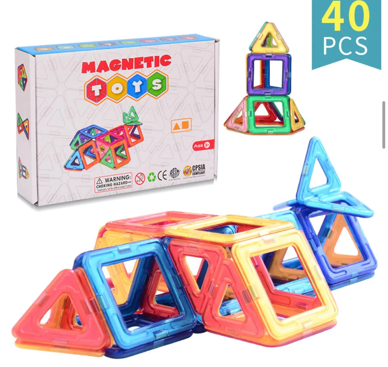 Les jeux de Blocs de Construction Magnétiques Fusée jouets 40PCS colorées – 3D Construction magnétiques ludiques sont des jouets aimantés éducatifs et créatifs. Les jouets construits sont plus solides, plus extensibles, plus réalistes et plus modernes! Toutes les pièces sont compatibles à 100 % avec tous les autres ensembles. Ces jeux de construction magnétiques promettent aux enfants un plaisir de jeu maximal et offrent la possibilité d’explorer le monde fascinant du magnétisme à l’aide de pièces surdimensionnées spécifiquement destinées à la manipulation par les jeunes enfants. Enchantez vos enfants par la découverte des effets d’attraction et de répulsion des aimants. Bien aimantées, les pièces de ce jeu de blocs de construction magnétiques Fusée tiennent solidement en place. Une fois assemblées, permettent de faire de nombreuses figures: chèvres, maison, pentagone, cœur, moulin, avion, balle,… Les enfants peuvent créer des formes planes en 2D ou des structures géométriques en 3D.