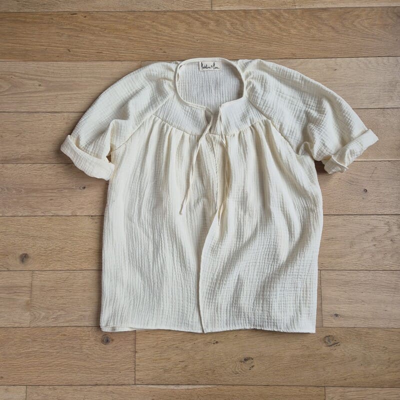 Blouse allaitement manches au coude- double gaze de coton uni – Ecru