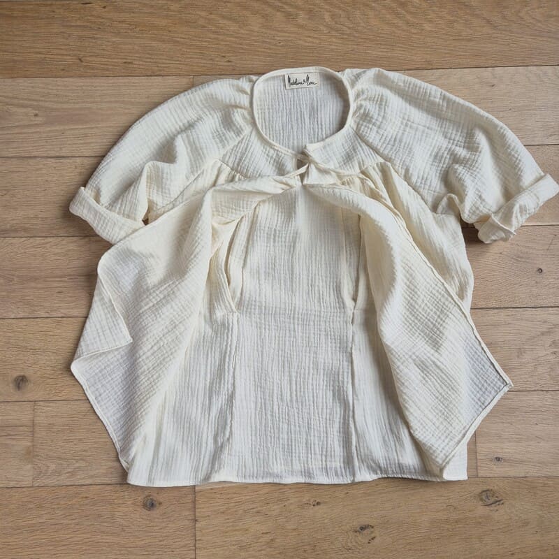 Notre blouse allaitement en double gaze de coton, douce et pratique pour allaiter partout.