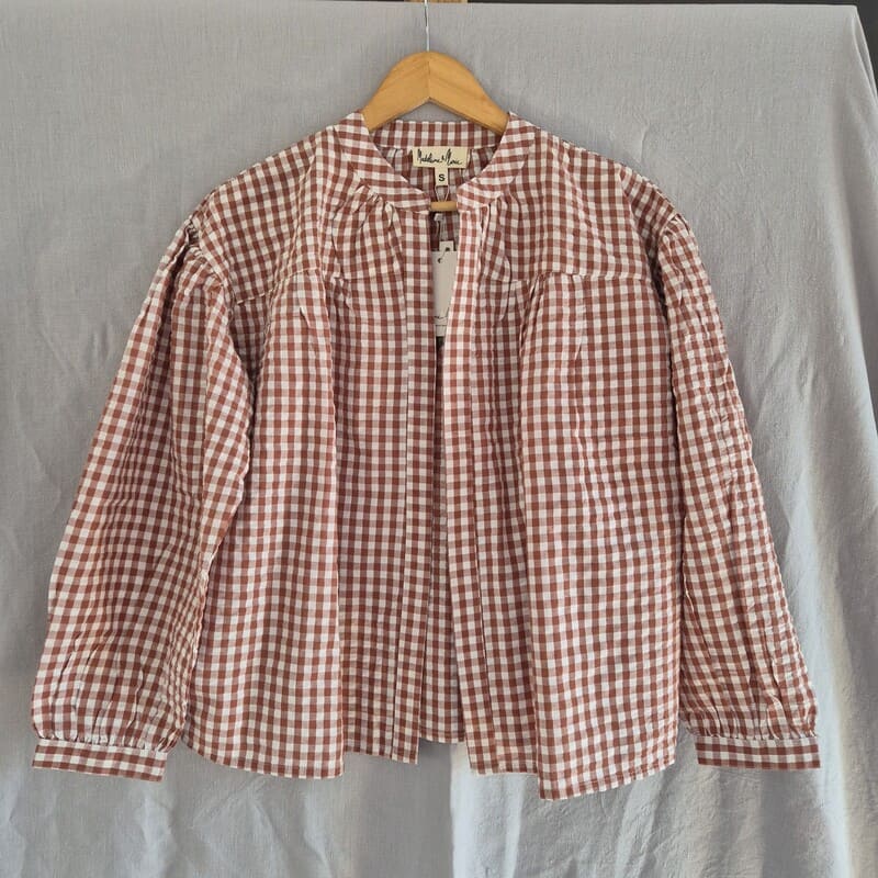 Blouse grossesse et allaitement coton – petits carreaux beige et blancs