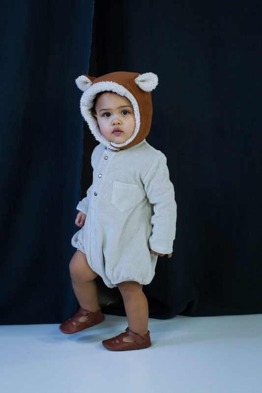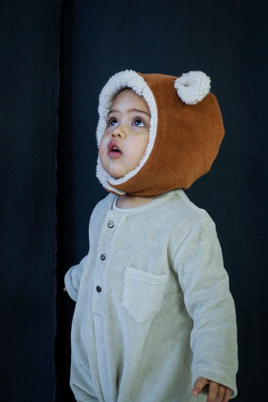 On adore ses petites oreilles qui donnent une allure rigolote 🙂 Il est bien chaud et cache les oreilles. Le petit +: il tient bien en place grâce à son bouton pression sous le menton, pratique pour les bébés qui arrachent leur bonnet 🙂