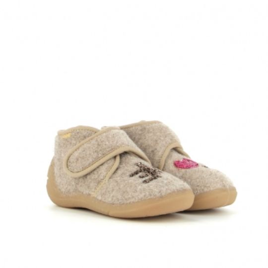 Les chaussons Amour Beige pour filles offrent confort et sécurité avec leur semelle souple et antidérapante. Faciles à enfiler, ils sont parfaits pour une exploration sécurisée de la maison.
