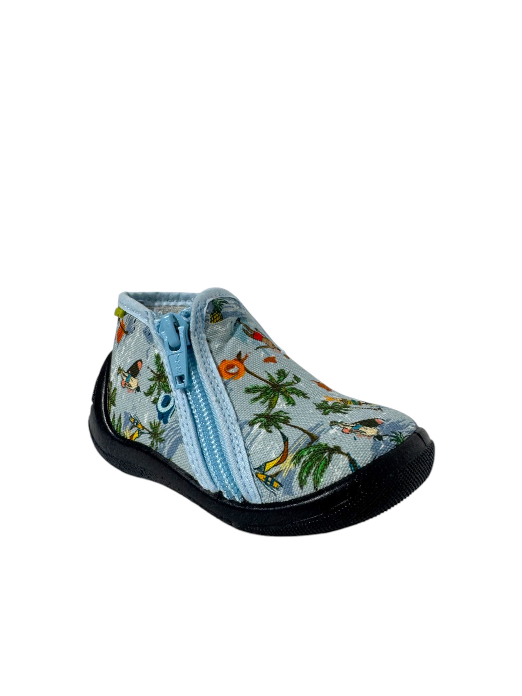 Les pantoufles Hawai bleu s’enfilent en un clin d’oeil. Elles offrent un confort et un maintien des pieds inégalés. Leur semelle souple et antidérapante promet une exploration de la maison en toute sécurité. Quelque soit la situation, pas besoin d’excuse pour enfiler nos jolis chaussons douillets. Fabrication française