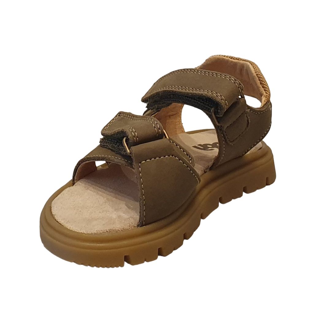 Sandales en cuir Bopy Epic Kaki, parfaites pour les petits aventuriers avec une fermeture pratique par deux scratchs.