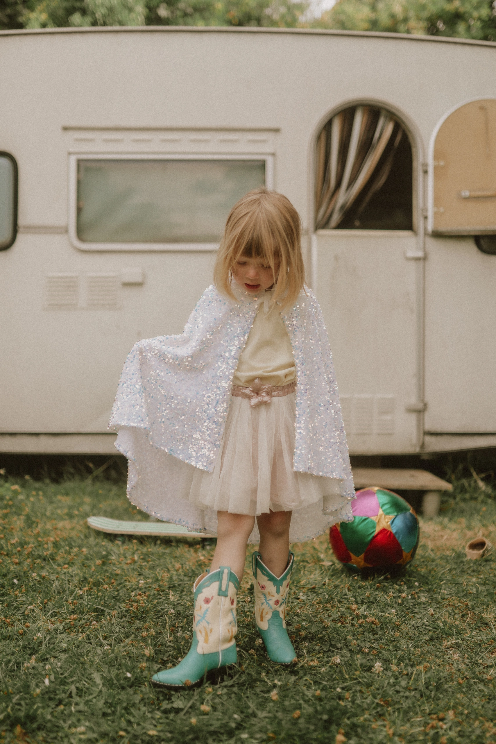 La cape whitesnow! Blanche comme neige, elle luit comme la neige des montagnes sous les rayons du soleil d’hiver. La cape est brodée de sequins holographiques. Elle se noue à l’aide d’un Velcro pour plus d’autonomie.