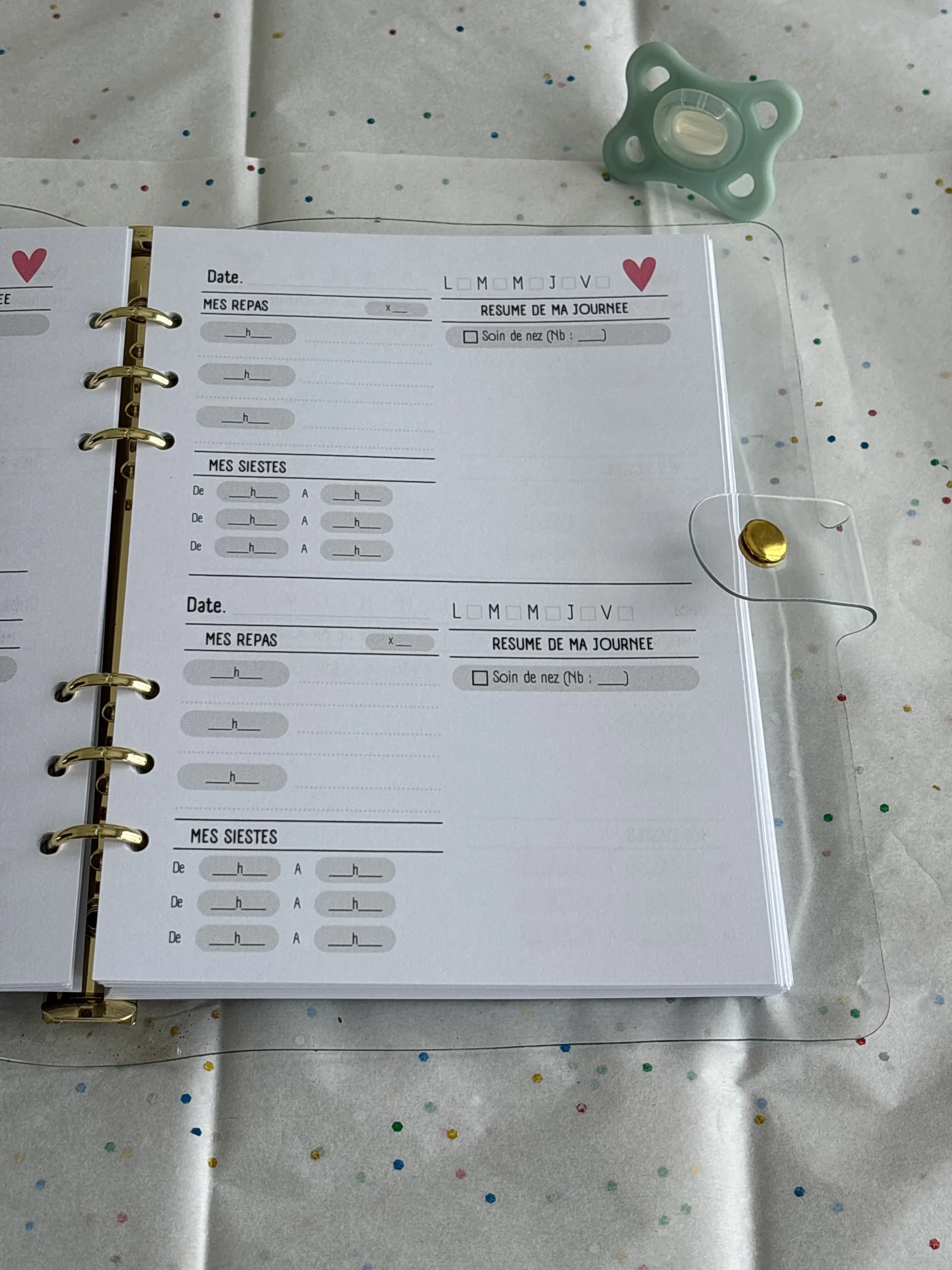 Véritable outil de transmission entre les familles et la nounou, l’assistante maternelle ou la crèche, le carnet de liaison Mon année avec Nounou 🧸 vous permettra de tout savoir de la journée de bébé en un coup d’œil.