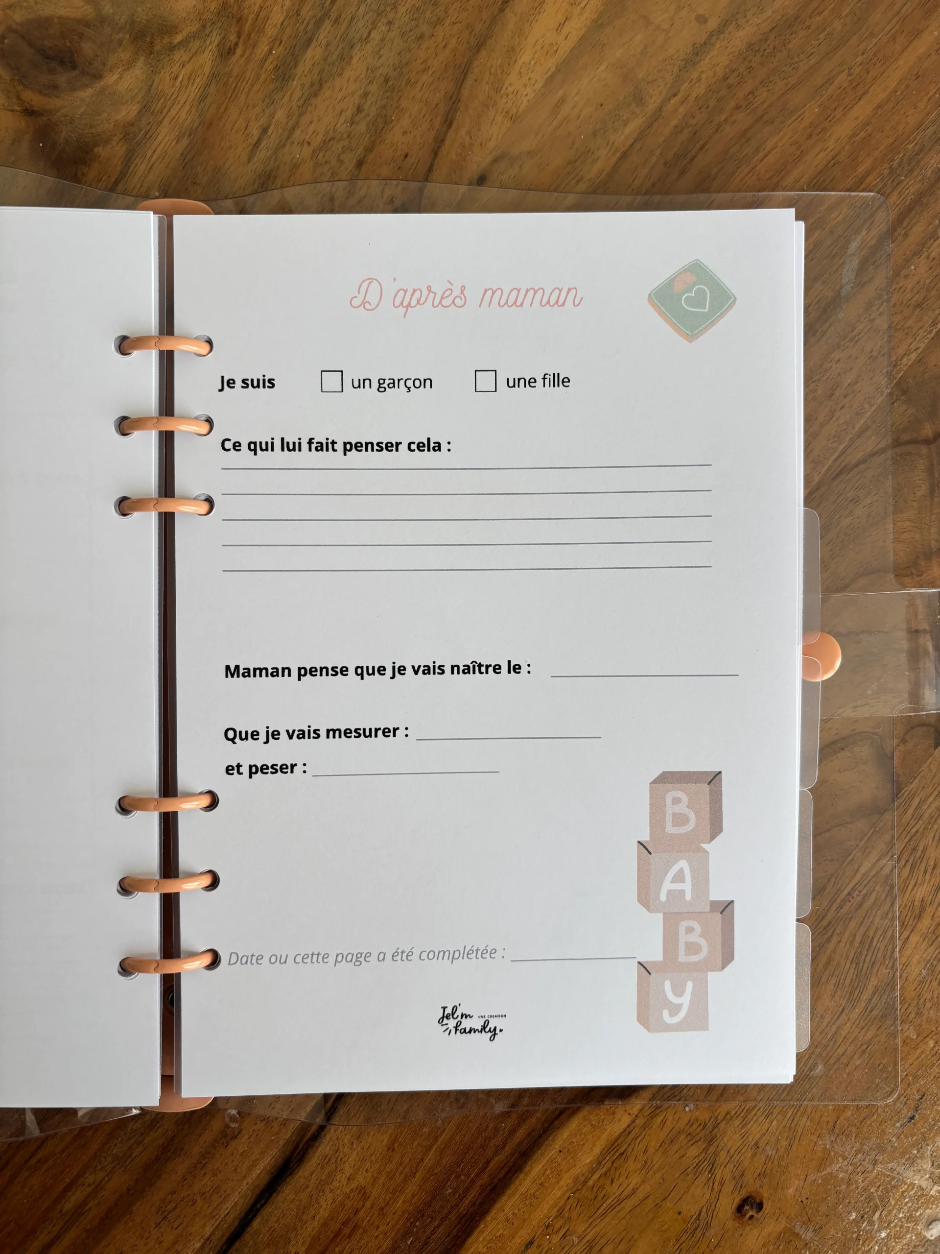 Ce carnet est parfait pour celles qui souhaitent vivre leur grossesse avec sérénité 😌, garder une trace précieuse de leurs émotions ❤️ et préparer l’arrivée de bébé 👶 en toute douceur.
