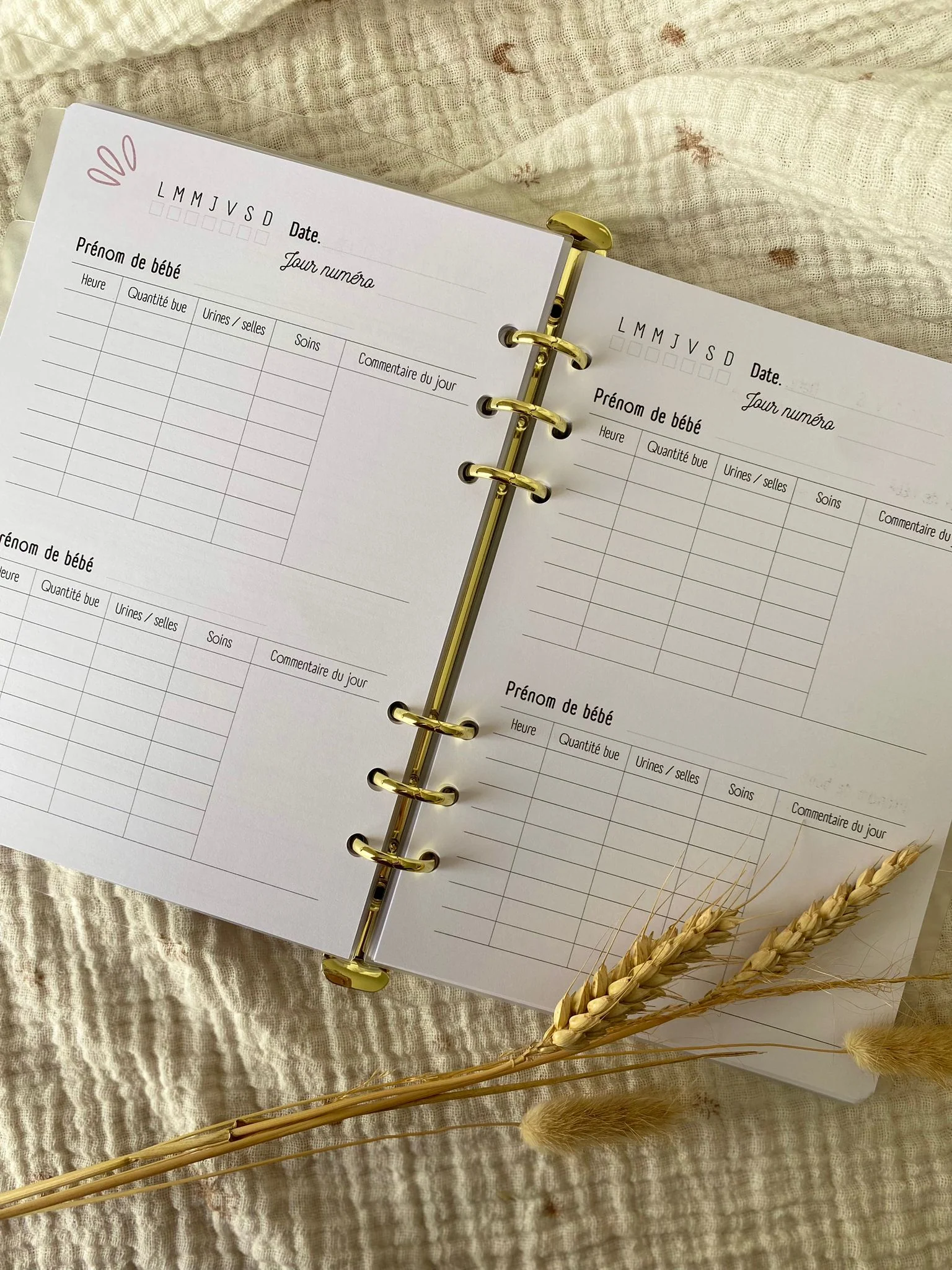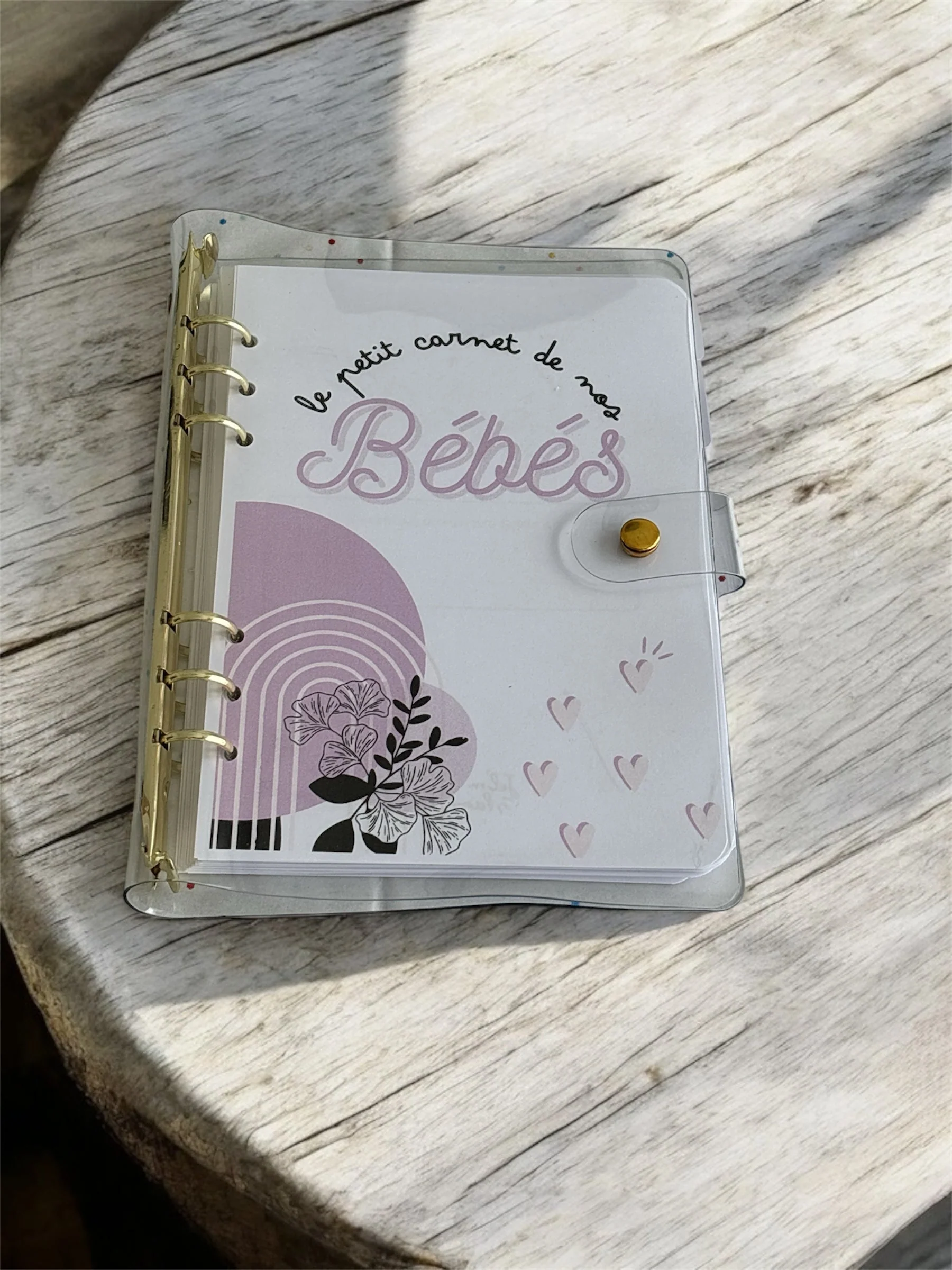 Le Petit Carnet de nos Bébés c’est un classeur au format pratique (A5) qui se glisse partout (sac à langer, sur la table,..) et qui vous permet de tout inscrire.