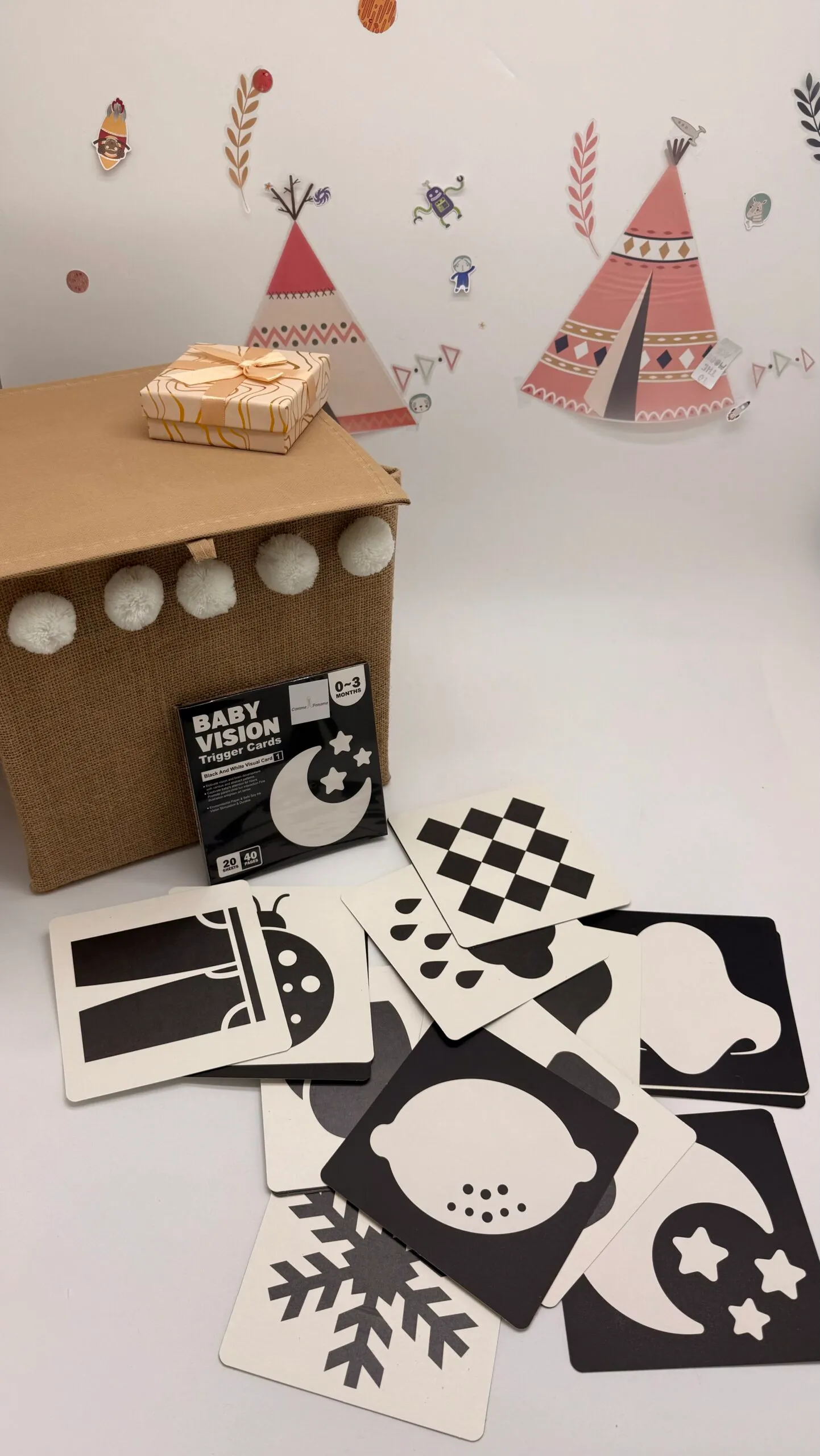 Dès la naissance, la vue de bébé est encore floue donc c’est pourquoi les images noir et blanc pour bébé sont idéales pour capter son attention. Ce jeu sensoriel pour bébé favorise le développement visuel et l’éveil cognitif tout en douceur c’est pourquoi nos cartes de stimulation sont conçues pour accompagner votre enfant dès les premiers jours, faisant d’elles un jouet bébé naissant incontournable.