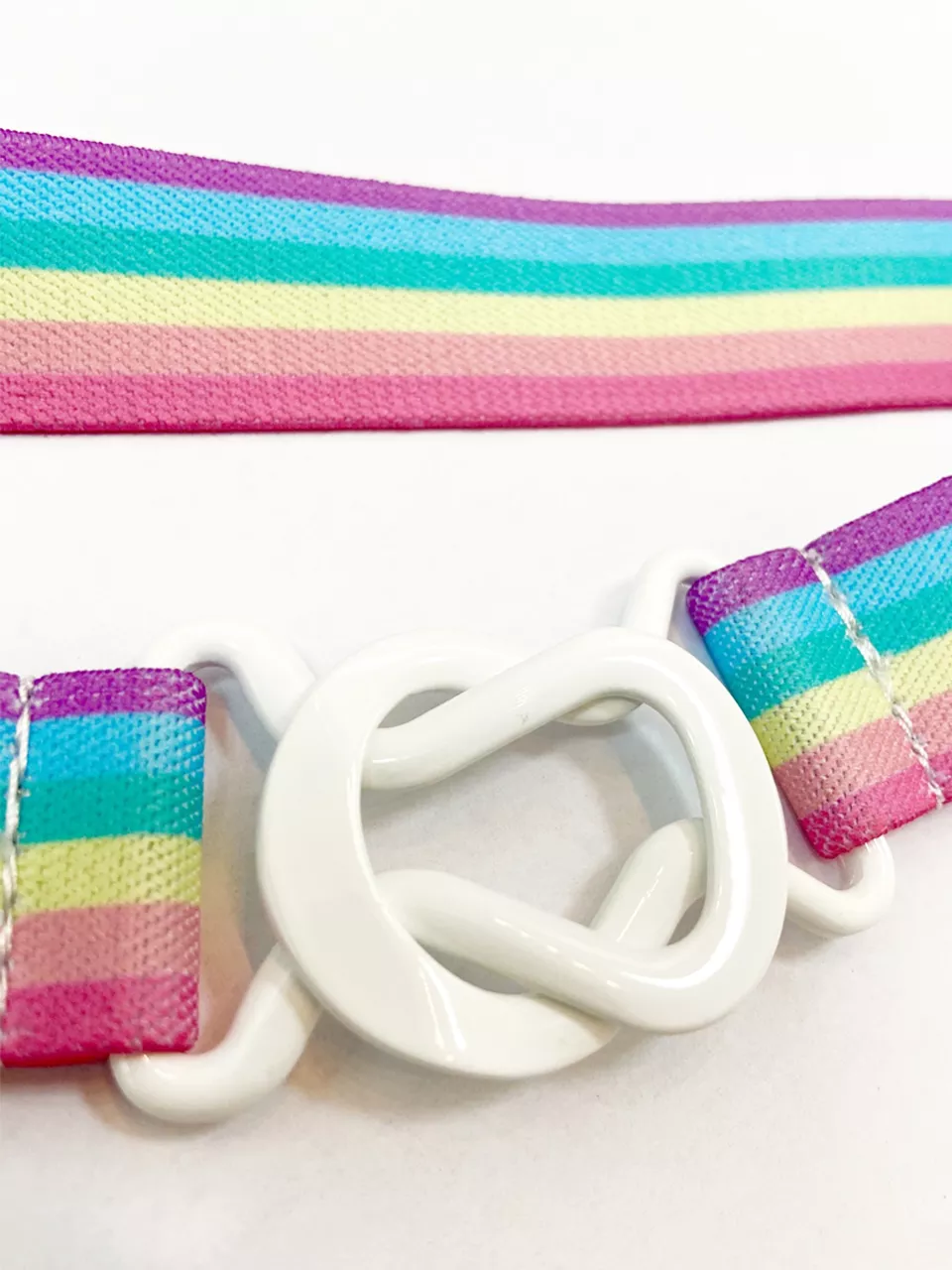 Pleine de couleurs, la ceinture élastique arc-en-ciel assure un look original !