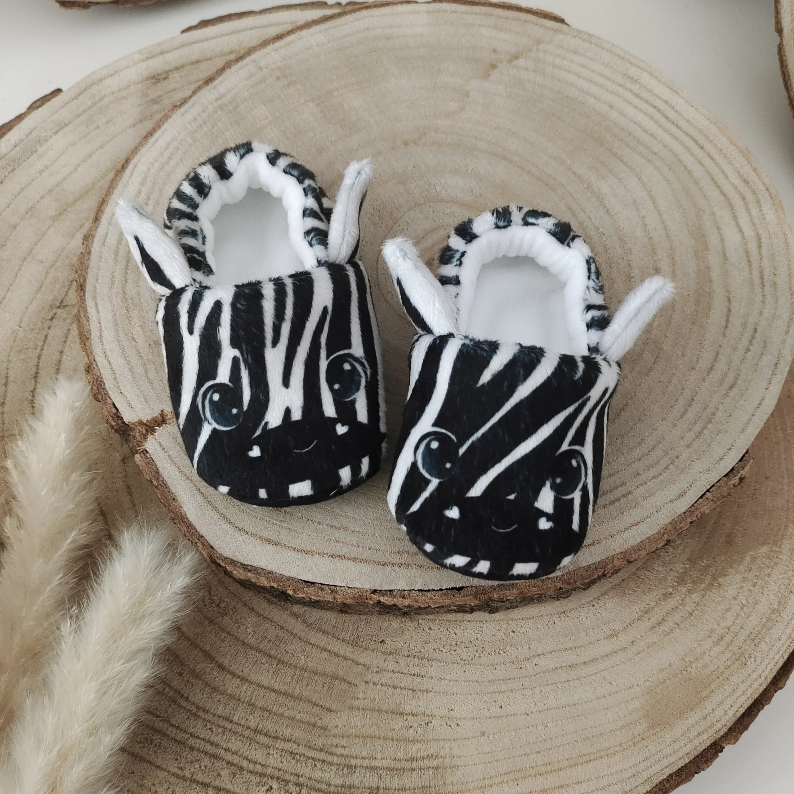 Idéal en cadeau de naissance, ces petits chaussons tout doux vous feront craquer avec leur bouille de zèbre, leurs petites oreilles mobiles, et leur pelage zébré