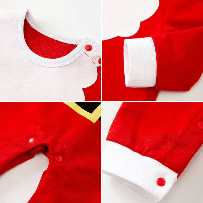 Celebrate the holidays with this adorable baby jumpsuit and hat set! It is made from a soft, cozy material, this jumpsuit will keep your little one comfortable all day long. The Santa Claus Baby Costume Set will keep them warm, while the cute Christmas-themed design is sure to bring a smile to their face. The included hat completes the look and will keep them nice and cozy.