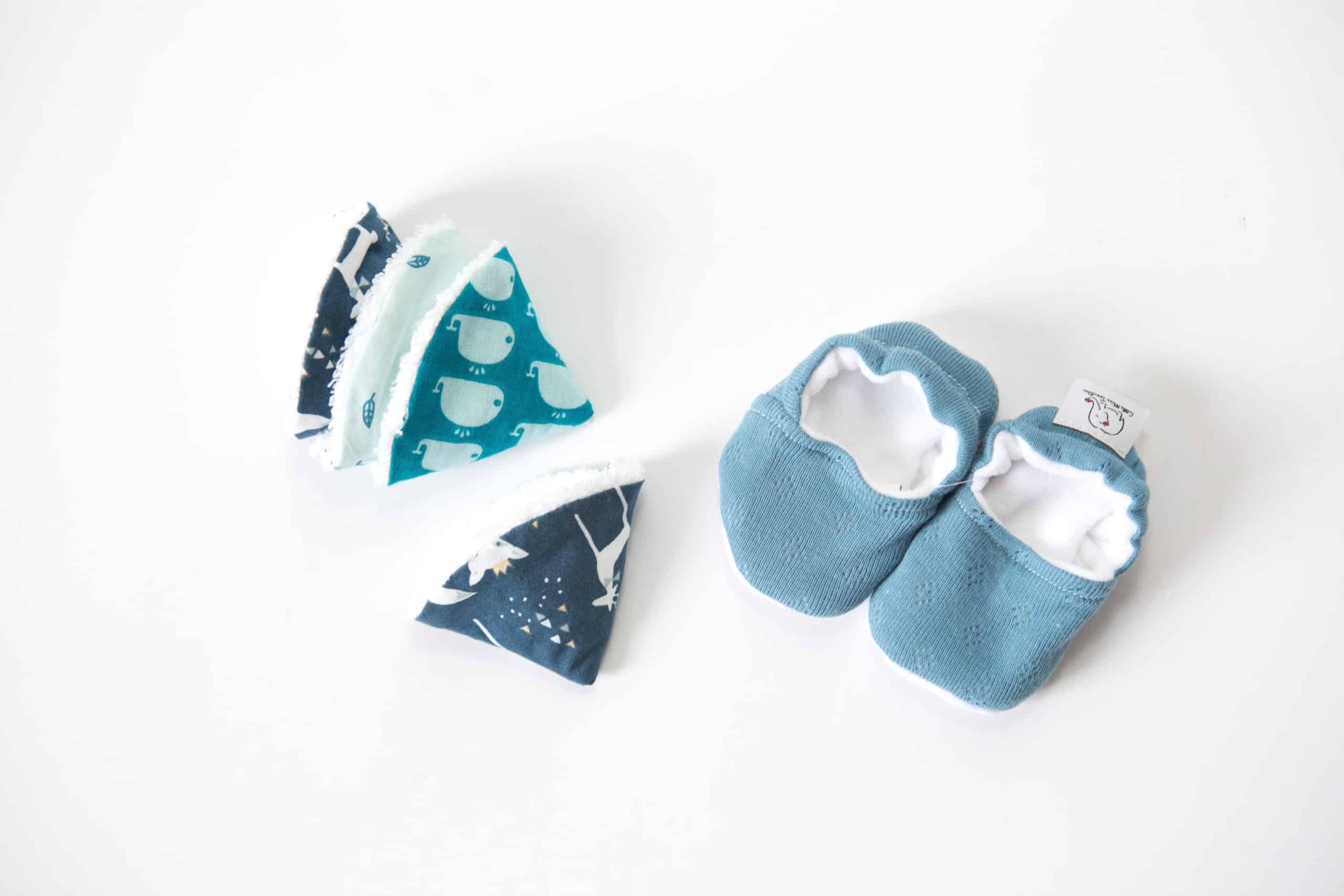 Les parents découvriront dans le coffret, une paire de chaussons tous doux (0-3 mois) ainsi que 4 tipis pour stopper les pipis surprises ;). Le tout cousu en Isère par deux créatrices ayant leurs ateliers à Grenoble et à Gières.