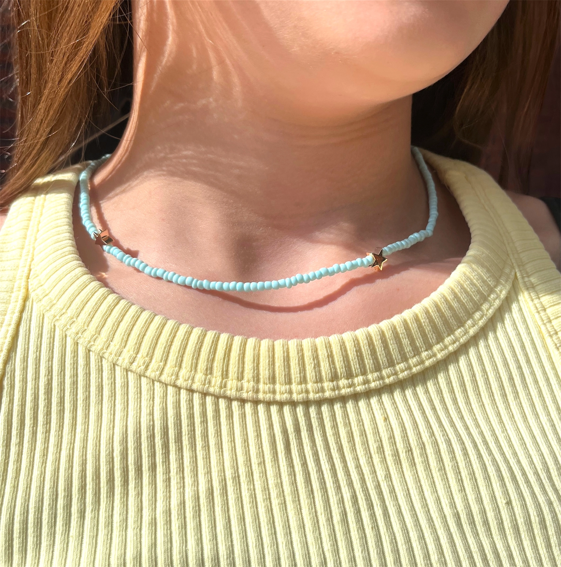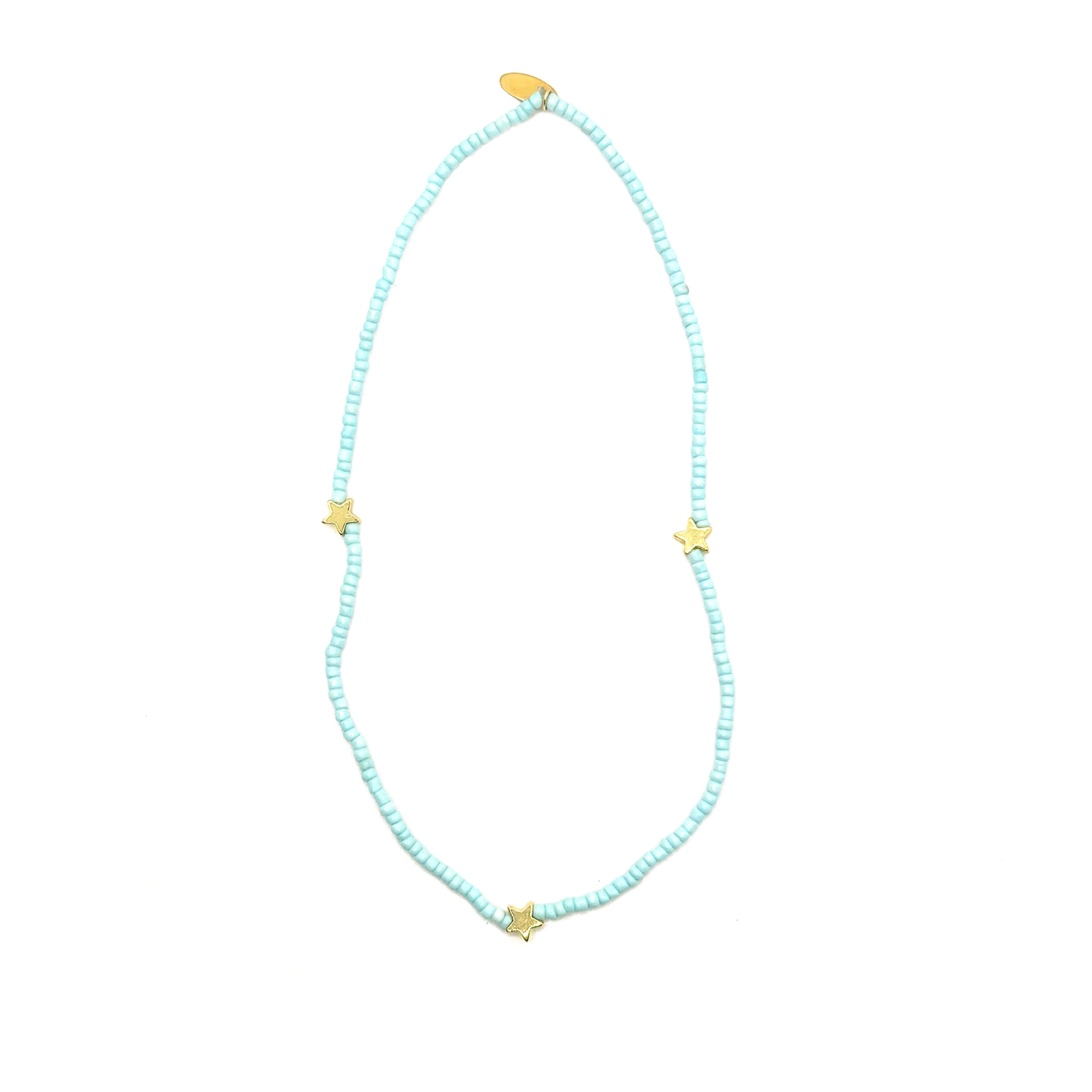 Avec ses perles ultra colorées en rose clair, bleu turquoise et violet + une petite étoile dorée qui brille comme une mini superstar, ce collier a tout bon. C’est l’accessoire qui twiste instantanément n’importe quelle tenue, pour les kids qui aiment que ça claque (sans en faire trop).