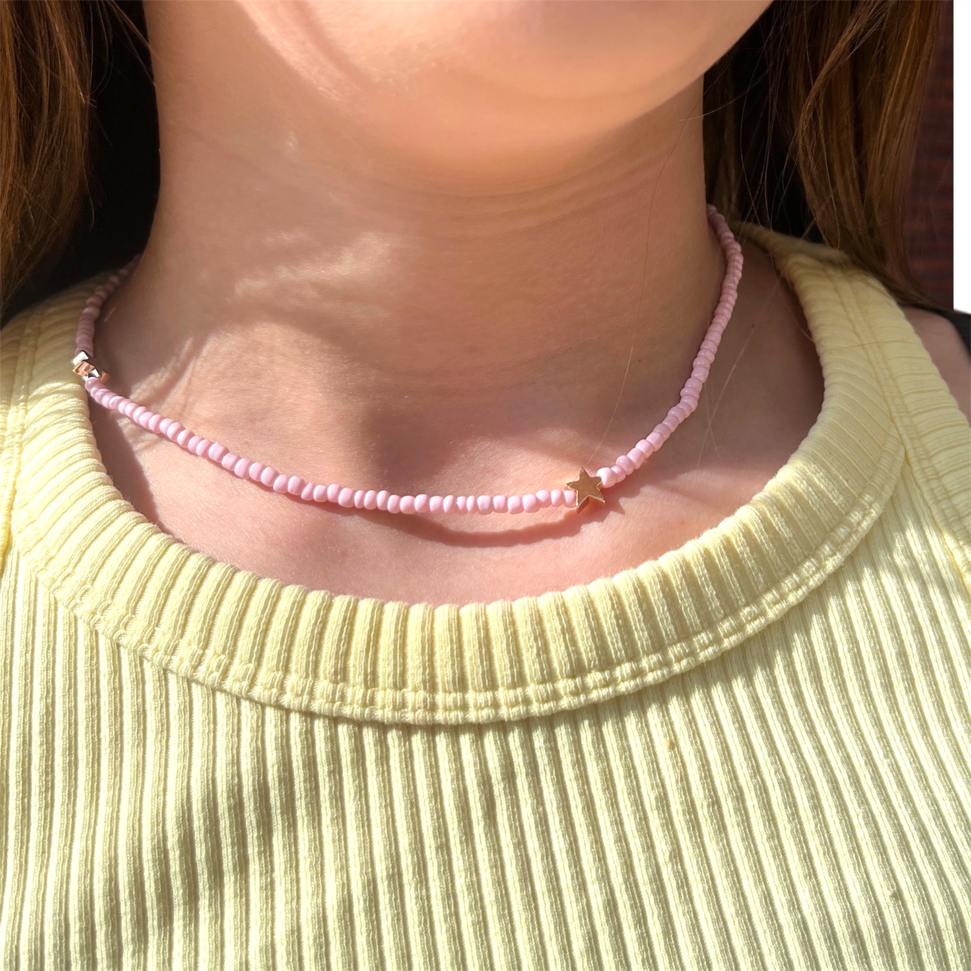 Collier élastique étoiles – rose