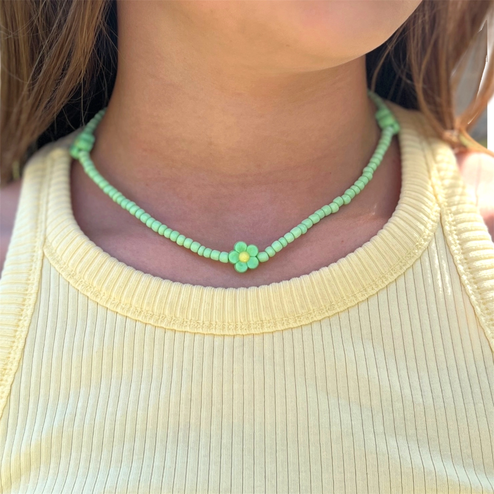 Collier élastique fleurs – vert