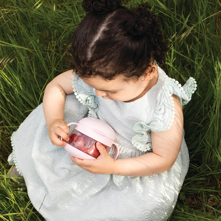 Le bol à collation parfait pour les petits qui n’ont pas le temps de s’arrêter pour prendre leur collation.