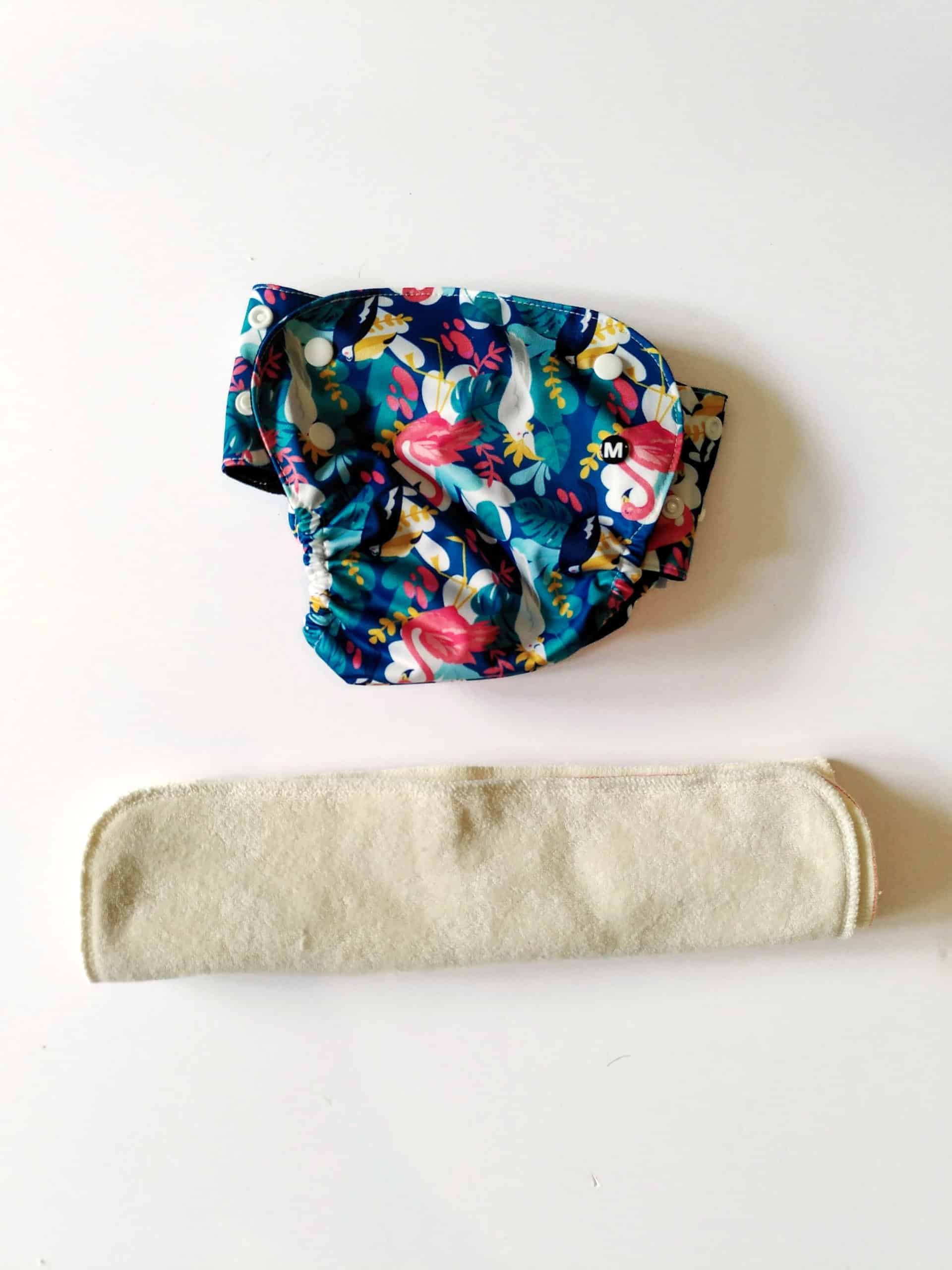 Couche TE2 taille S ou M composée d’une culotte imperméable et d’un insert (partie absorbante) que l’on pose dans la culotte. système d’attache à pressions à niveaux réglables.