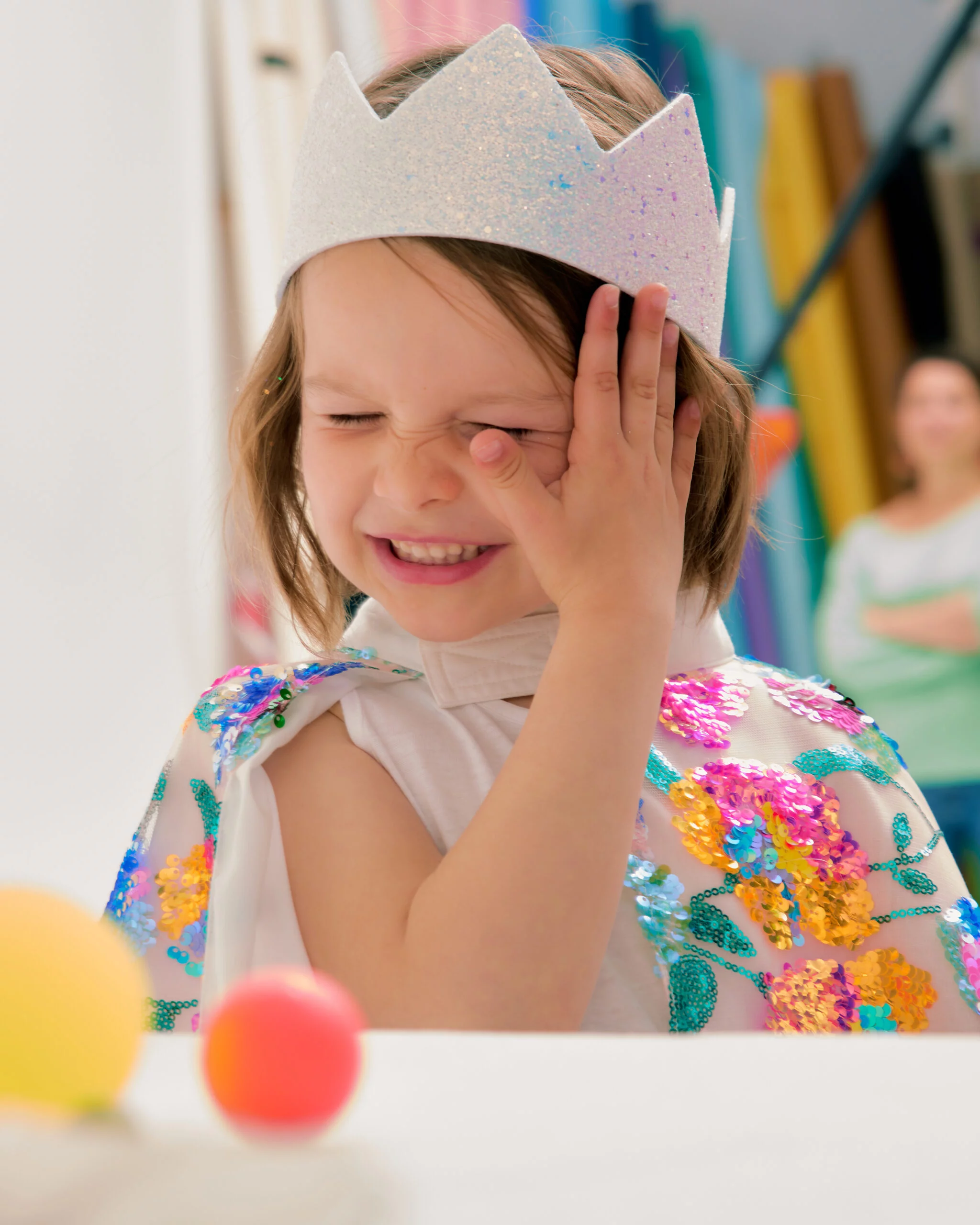 La couronne de princesse en feutrine est assortie de paillettes. Elle existe en 4 coloris: blanc, rose doré et argent!