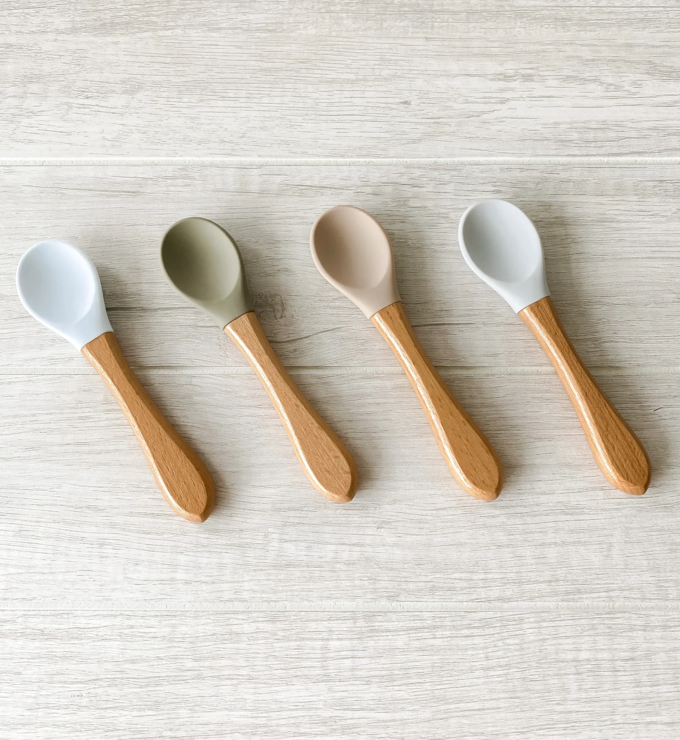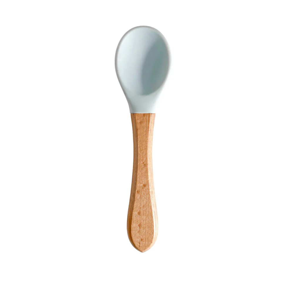 Une petite cuillère faite de silicone de grade alimentaire la rendant douce sur les gencives sensibles de bébé, avec un manche en bois pour plus de contrôle durant la prise des aliments.