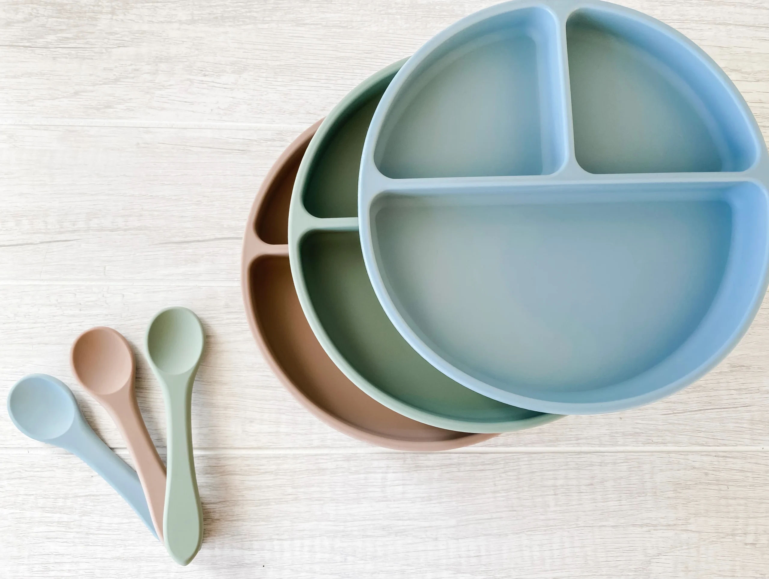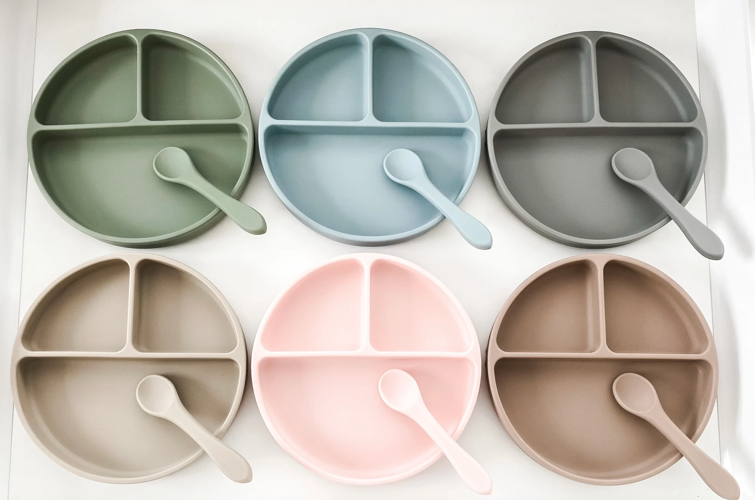 Assiette compartimentée en silicone de grade alimentaire, sans BPA.
