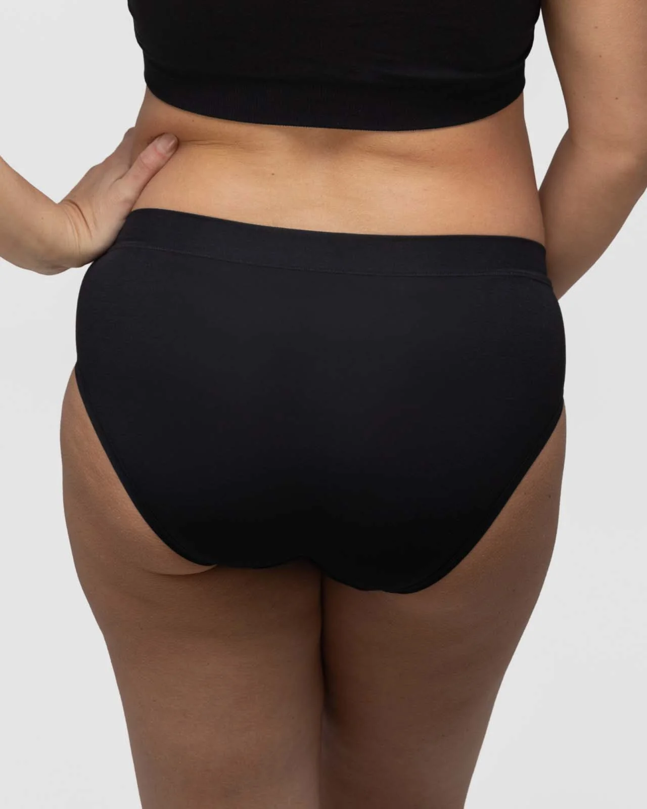 Avec leur coupe basse ultra-flatteuse, nos culottes sans coutures allient style et protection supérieure. Fabriquées en modal Tencel™ de luxe, elles s’étirent avec vos hanches qui gonflent en début de grossesse, s’adaptant parfaitement à votre ventre rond sans aucune pression, au troisième trimestre.