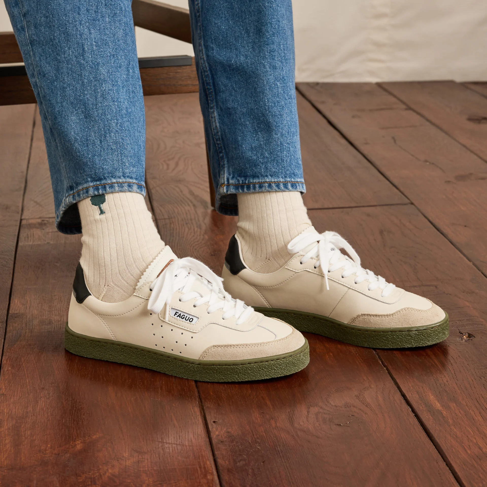 FAGUO – Baskets Lumbo – Ecru/noir