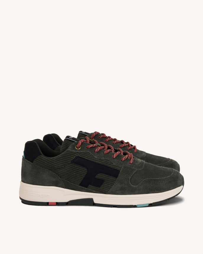 En ville ou en escapade, la basket OLIVE kaki suit chaque pas. Running lifestyle urbaine et casual, elle a été pensée par notre studio pour conjuguer confort et légèreté. Sa semelle Flexway intègre deux points de flexion à l’avant, permettant à la chaussure d’accompagner naturellement le mouvement du pied lors de la marche. Résultat : une foulée fluide et un confort optimal tout au long de la journée. La tige est réalisée en polyester recyclé, complétée par des empiècements en cuir suède pour plus de relief et de résistance. Les lacets, en polyester recyclé, renforcent l’engagement de FAGUO en faveur de…