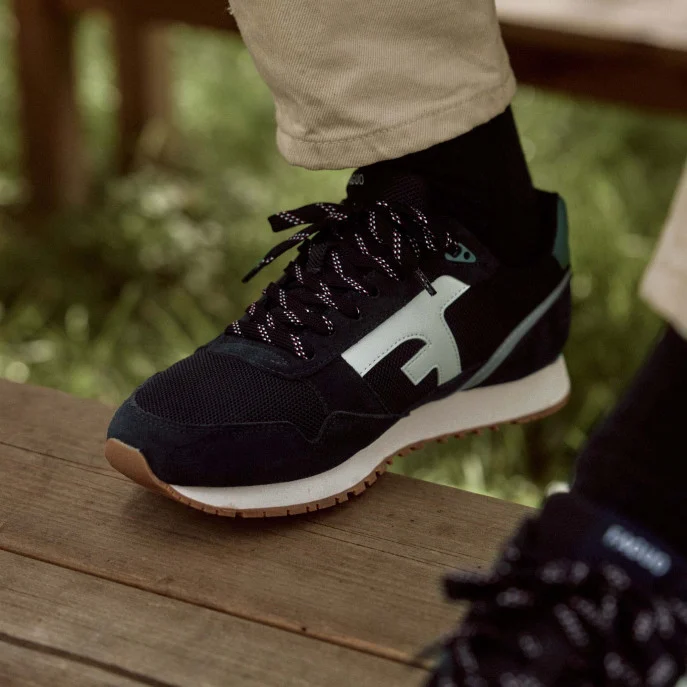 Optez pour la chaussure Faguo Running ELM bleu marine, inspirée des modèles rétro et spécialement conçue pour le vélo. Elle allie style et sécurité avec son empiècement réfléchissant à l’arrière, parfait pour un look intemporel et une meilleure visibilité. Dotée d’une semelle en EVA, cette chaussure offre légèreté et confort, pour une foulée dynamique et fluide, idéale autant pour vos trajets en ville que pour vos balades en plein air.