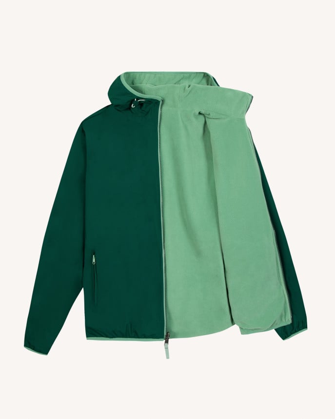 CARNOET est une veste imperméable dont les détails de zips colorés et les finitions sont inspirés de l’univers de l’outdoor. Elle est pratique en cas d’intempéries grâce à sa capuche, sa matière déperlante et ses finitions élastiquées.