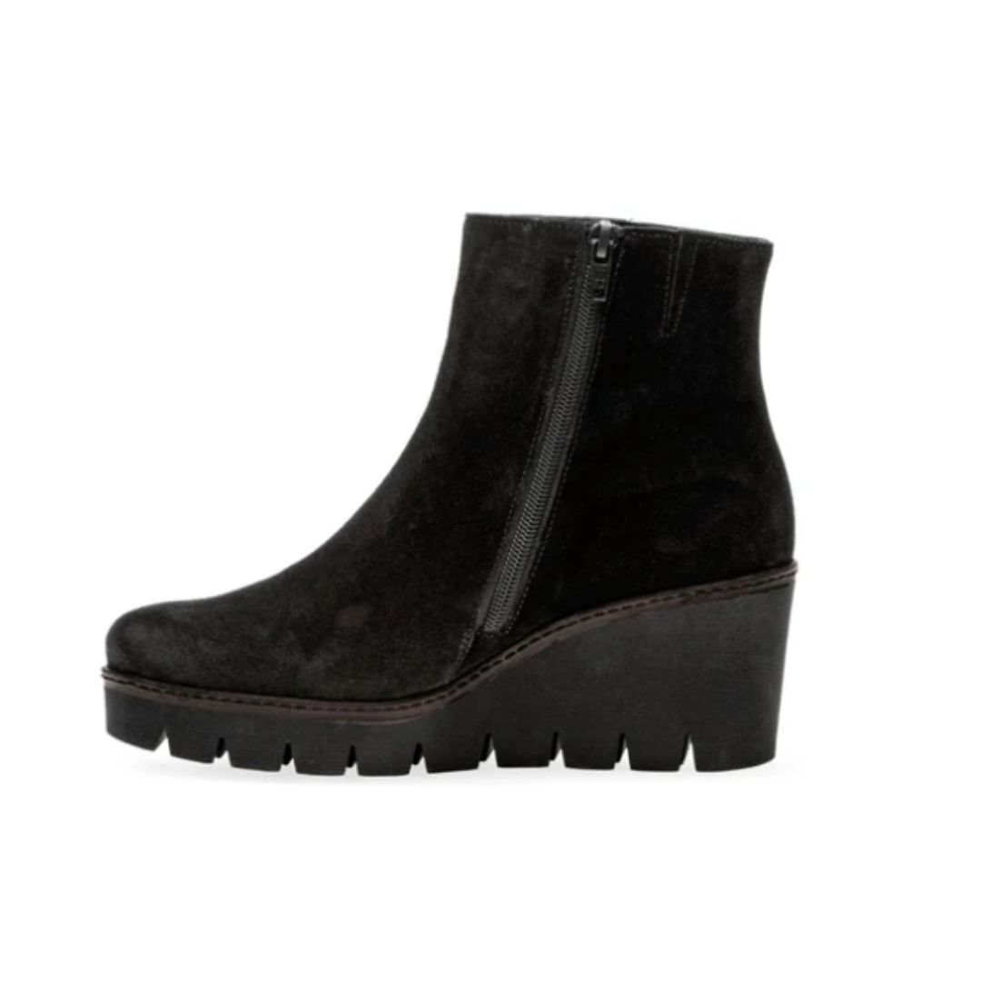 Allier confort optimal et esthétique singulière, c’est la promesse produit de cette bottine tendance Mode ! Réalisée en cuir lisse souple et dotée d’une doublure Micro elle vous acompagnera tout au long de l’Hiver. De plus; le talon compensé de 50 mm de hauteur et la semelle de marche gomme souple isolante garderont vos pieds au chaud. Le programme Best Fitting Gabor : plus de largeur sur l’avant pied pour plus de confort et la fermeture éclair vous assurent un chaussant optimal et facile.