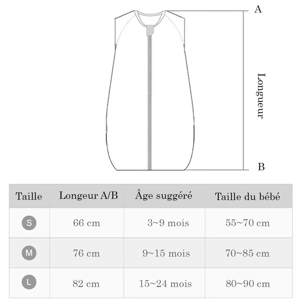 De plus, cette gigoteuse est conçue pour une utilisation optimale entre 10 et 25 degrés Celsius, assurant ainsi un confort thermique parfait toute la nuit.