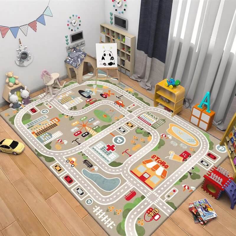 Le tapis est suffisamment grand pour offrir à l’enfant un espace où il pourra laisser libre cours à son imagination et créer ses propres aventures avec ses petites voitures. Les détails des parcours de voitures sont remarquablement réalistes, avec des routes, des intersections, des passages piétons et même des parkings.