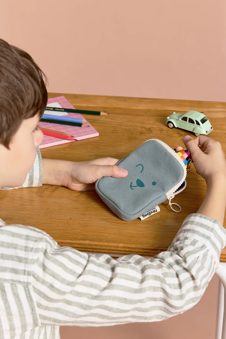 Billy, c’est la mini pochette à trésors qu’on accroche sur un cartable, un sac à dos, ou même une ceinture de pantalon. Grâce à son mousqueton facile à manipuler, elle se clippe partout ! Assez grande pour accueillir à la fois une carte de cantine, un pass transport, un paquet de mouchoirs, des cartes Pokémon et quelques trésors glanés dans la cour ou au parc. Elle accompagne les enfants dans toutes leurs aventures du quotidien. Mais surtout, grâce à sa matière réfléchissante au verso, elle sécurise les enfants dans leurs déplacements.